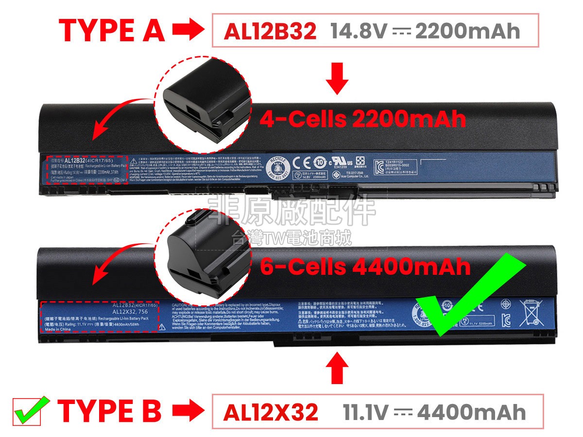 台灣TW電池商城售賣的所有電池均為100%真實容量,我們絕不會在參數上造假。對於製造商提供的每一款電池,我們都會安排技術人員進行參數測試,以確保我們售賣的電池都符合各種認證的要求、100%安全和100%兼容對應的筆記型電腦。極少數情況下,電池參數表上的容量會比電池實物圖上的容量低,這是因為我們檢測時發現製造商給出的電池容量偏高,與電池實際容量不符。於是我們會把電池的實際容量準確地填寫在參數表上,讓顧客直接看到電池的真實容量!這款Acer Aspire V5-131電池和原廠有什麼區別?