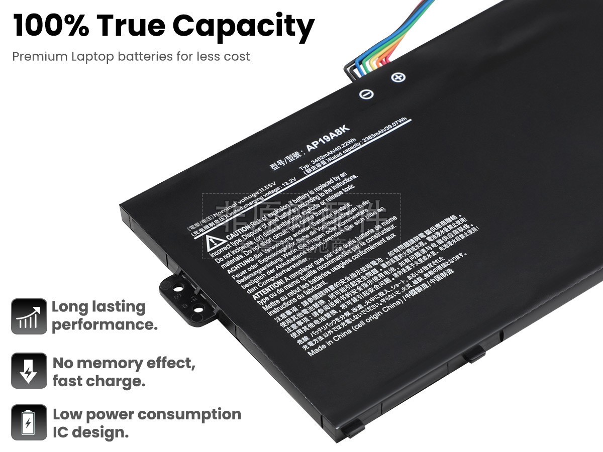 台灣TW電池商城售賣的所有電池均為100%真實容量,我們絕不會在參數上造假。對於製造商提供的每一款電池,我們都會安排技術人員進行參數測試,以確保我們售賣的電池都符合各種認證的要求、100%安全和100%兼容對應的筆記型電腦。極少數情況下,電池參數表上的容量會比電池實物圖上的容量低,這是因為我們檢測時發現製造商給出的電池容量偏高,與電池實際容量不符。於是我們會把電池的實際容量準確地填寫在參數表上,讓顧客直接看到電池的真實容量!這款Acer Chromebook SPIN 511 CP511-2HT-C45L電池和原廠有什麼區別?