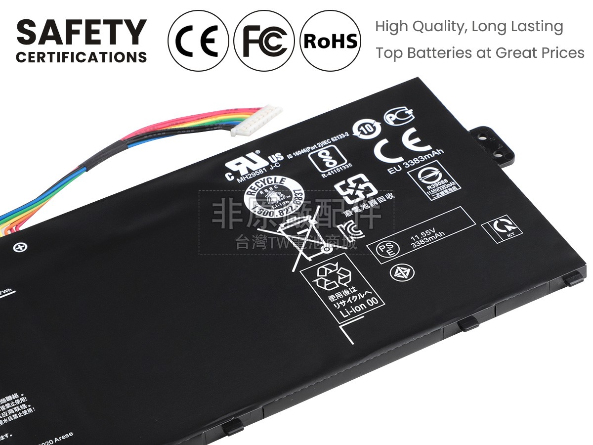除了使用好的材料外,TW電池商城還以更高的行業標準檢測產品,目前我們的Acer Chromebook SPIN 511 CP511-2HT-C45L手提電腦電池已經通過日本PSE強制認證、歐盟RoHS環保認證、CE安全認證、美國FCC認證和MSDS化學品安全認證。