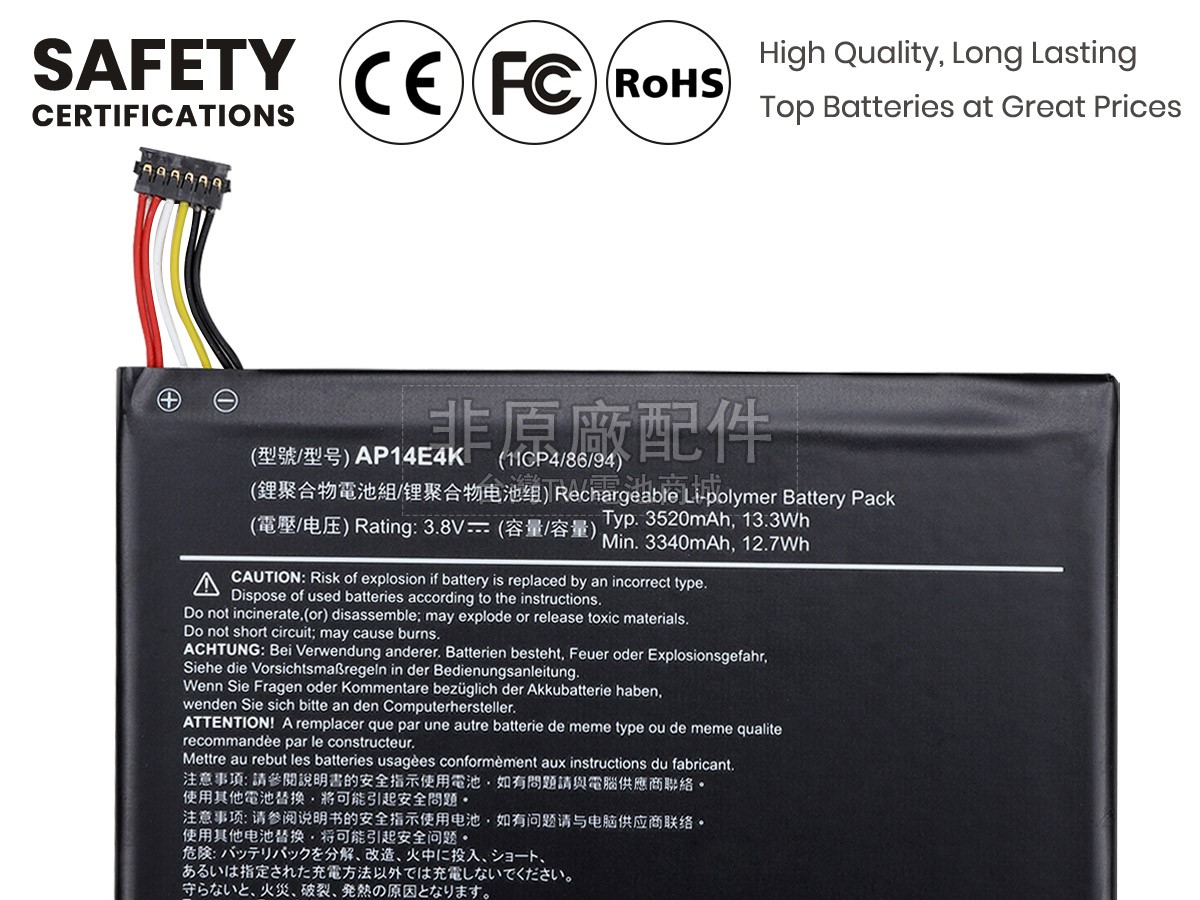 筆電電池好不好要看“芯”,內置電芯是筆電電池最重要的組成部分。 我們的ACER宏碁KT00104001筆記型電腦電池都是採用原廠品質的A+級電芯組裝而成,確保更好的安全性,更長的供電時間和更久的使用壽命。