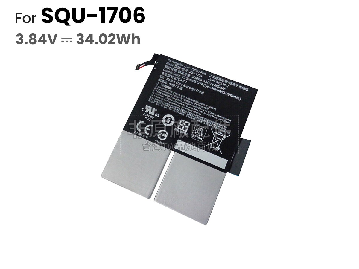 台灣TW電池商城售賣的所有電池均為100%真實容量,我們絕不會在參數上造假。對於製造商提供的每一款電池,我們都會安排技術人員進行參數測試,以確保我們售賣的電池都符合各種認證的要求、100%安全和100%兼容對應的筆記型電腦。極少數情況下,電池參數表上的容量會比電池實物圖上的容量低,這是因為我們檢測時發現製造商給出的電池容量偏高,與電池實際容量不符。於是我們會把電池的實際容量準確地填寫在參數表上,讓顧客直接看到電池的真實容量!這款Acer SQU-1706電池和原廠有什麼區別?