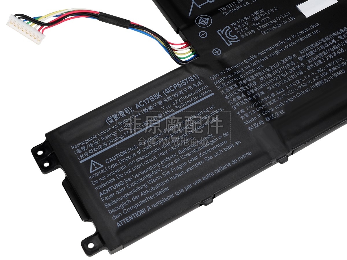 台灣TW電池商城售賣的所有電池均為100%真實容量,我們絕不會在參數上造假。對於製造商提供的每一款電池,我們都會安排技術人員進行參數測試,以確保我們售賣的電池都符合各種認證的要求、100%安全和100%兼容對應的筆記型電腦。極少數情況下,電池參數表上的容量會比電池實物圖上的容量低,這是因為我們檢測時發現製造商給出的電池容量偏高,與電池實際容量不符。於是我們會把電池的實際容量準確地填寫在參數表上,讓顧客直接看到電池的真實容量!這款Acer SWIFT 3 SF315-52G-31FT電池和原廠有什麼區別?