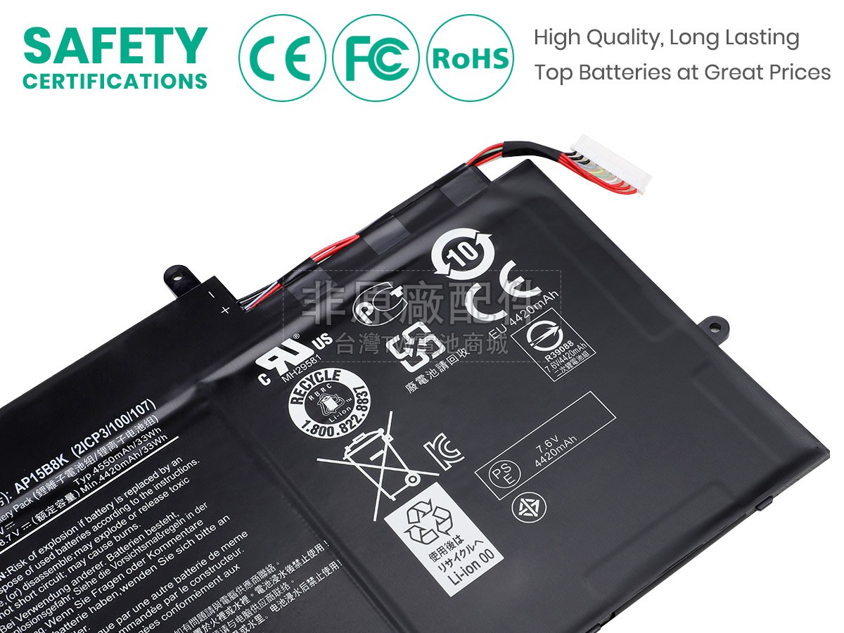 台灣TW電池商城售賣的所有電池均為100%真實容量,我們絕不會在參數上造假。對於製造商提供的每一款電池,我們都會安排技術人員進行參數測試,以確保我們售賣的電池都符合各種認證的要求、100%安全和100%兼容對應的筆記型電腦。極少數情況下,電池參數表上的容量會比電池實物圖上的容量低,這是因為我們檢測時發現製造商給出的電池容量偏高,與電池實際容量不符。於是我們會把電池的實際容量準確地填寫在參數表上,讓顧客直接看到電池的真實容量!這款Acer SWITCH 12S SW7-272電池和原廠有什麼區別?