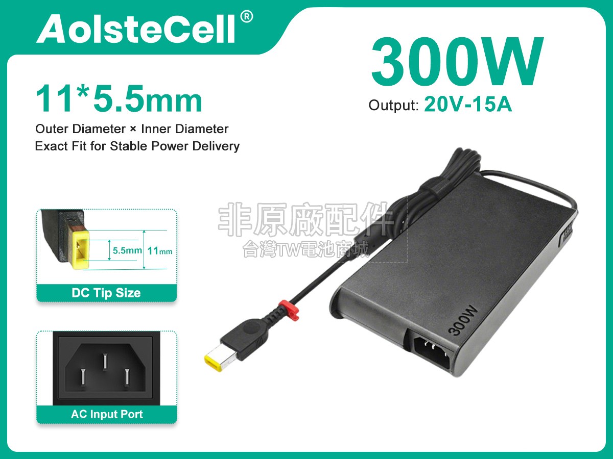 配備先進的智慧電源晶片,LENOVO聯想20V 15A 300W 11*5.5MM充電器可自動偵測和調整輸出功率以相容於您的裝置。