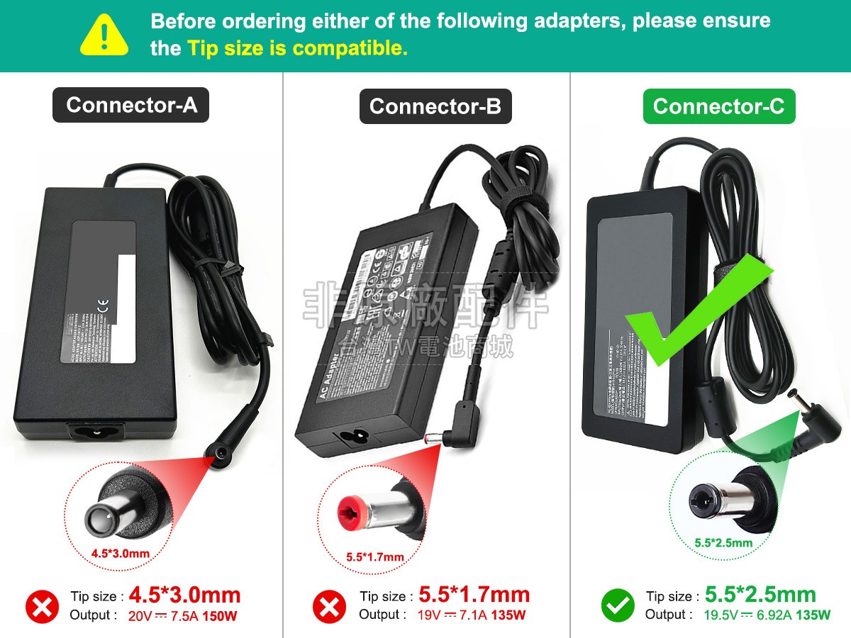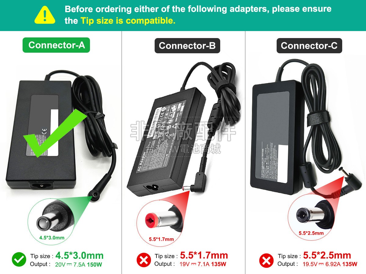 1. 確定自己需要MSI A18-135P1A變壓器,為避免出錯,可聯絡我們或訂購時填寫設備的型號便於我們判斷您是否購買了正確的變壓器;