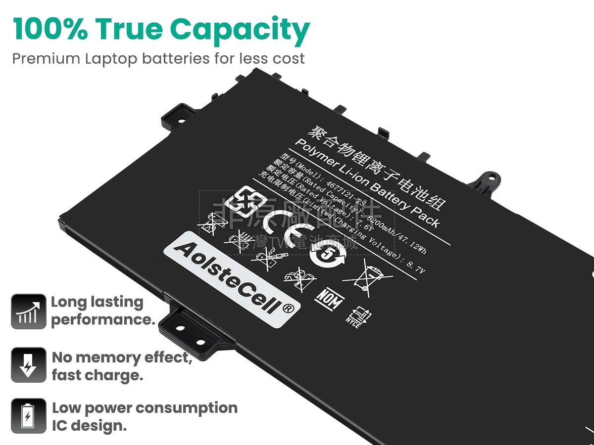 台灣TW電池商城售賣的所有電池均為100%真實容量,我們絕不會在參數上造假。對於製造商提供的每一款電池,我們都會安排技術人員進行參數測試,以確保我們售賣的電池都符合各種認證的要求、100%安全和100%兼容對應的筆記型電腦。極少數情況下,電池參數表上的容量會比電池實物圖上的容量低,這是因為我們檢測時發現製造商給出的電池容量偏高,與電池實際容量不符。於是我們會把電池的實際容量準確地填寫在參數表上,讓顧客直接看到電池的真實容量!這款AolsteCell 4677121-2S電池和原廠有什麼區別?