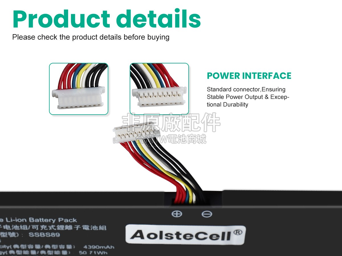 台灣TW電池商城售賣的所有電池均為100%真實容量,我們絕不會在參數上造假。對於製造商提供的每一款電池,我們都會安排技術人員進行參數測試,以確保我們售賣的電池都符合各種認證的要求、100%安全和100%兼容對應的筆記型電腦。極少數情況下,電池參數表上的容量會比電池實物圖上的容量低,這是因為我們檢測時發現製造商給出的電池容量偏高,與電池實際容量不符。於是我們會把電池的實際容量準確地填寫在參數表上,讓顧客直接看到電池的真實容量!這款AolsteCell SSBS89電池和原廠有什麼區別?