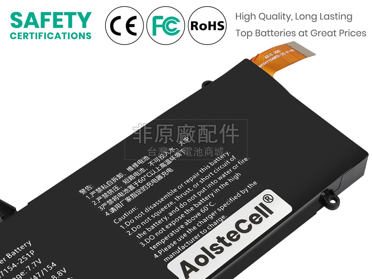 台灣TW電池商城售賣的所有電池均為100%真實容量,我們絕不會在參數上造假。對於製造商提供的每一款電池,我們都會安排技術人員進行參數測試,以確保我們售賣的電池都符合各種認證的要求、100%安全和100%兼容對應的筆記型電腦。極少數情況下,電池參數表上的容量會比電池實物圖上的容量低,這是因為我們檢測時發現製造商給出的電池容量偏高,與電池實際容量不符。於是我們會把電池的實際容量準確地填寫在參數表上,讓顧客直接看到電池的真實容量!這款AolsteCell ZEAC4547154-2S1P電池和原廠有什麼區別?