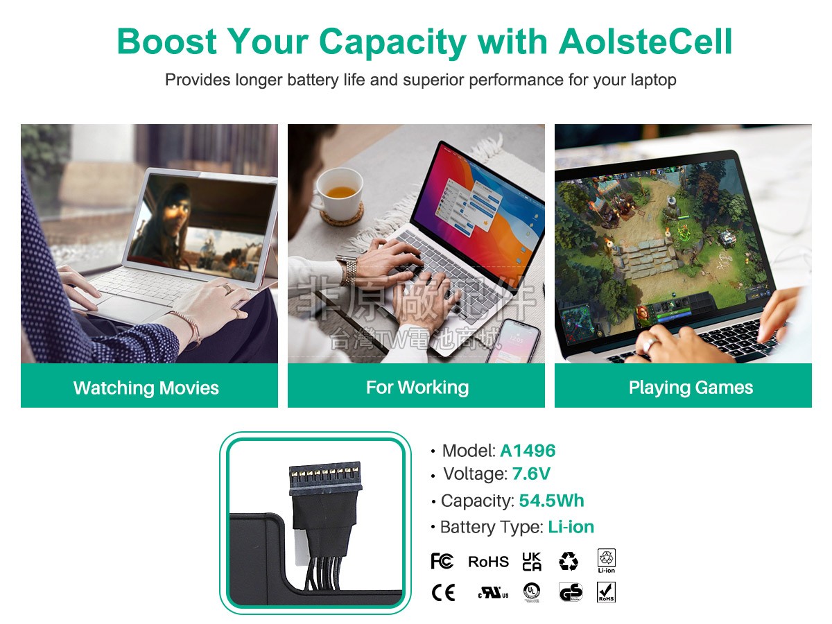 6. 選擇更高容量的APPLE蘋果A1466 EMC 3178副廠電池。