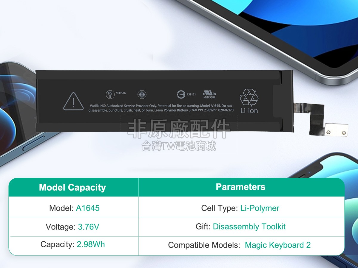 台灣TW電池商城售賣的所有電池均為100%真實容量,我們絕不會在參數上造假。對於製造商提供的每一款電池,我們都會安排技術人員進行參數測試,以確保我們售賣的電池都符合各種認證的要求、100%安全和100%兼容。極少數情況下,電池參數表上的容量會比電池實物圖上的容量低,這是因為我們檢測時發現製造商給出的電池容量偏高,與電池實際容量不符。於是我們會把電池的實際容量準確地填寫在參數表上,讓顧客直接看到電池的真實容量!這款Apple A1645電池和原廠有什麼區別?