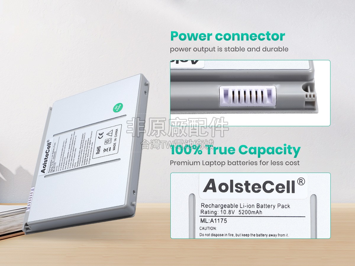 系統穩定,不容忽視!使用美國德州智能IT芯片,保證電池充電更快,對於溫度、電壓、電流的檢測精度正確率更高;電池外殼採用原廠設計方案,100%兼容您的筆電,實現我們的APPLE蘋果MA601LL電池與您的筆電零障礙溝通,讓您用的更放心。
