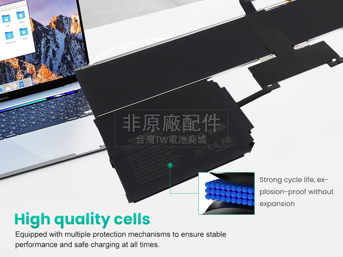 系統穩定,不容忽視!使用美國德州智能IT芯片,保證電池充電更快,對於溫度、電壓、電流的檢測精度正確率更高;電池外殼採用原廠設計方案,100%兼容您的筆電,實現我們的APPLE蘋果MacBook Air M2 8 CPU 8 GPU 13 A2681 EMC 4074電池與您的筆電零障礙溝通,讓您用的更放心。