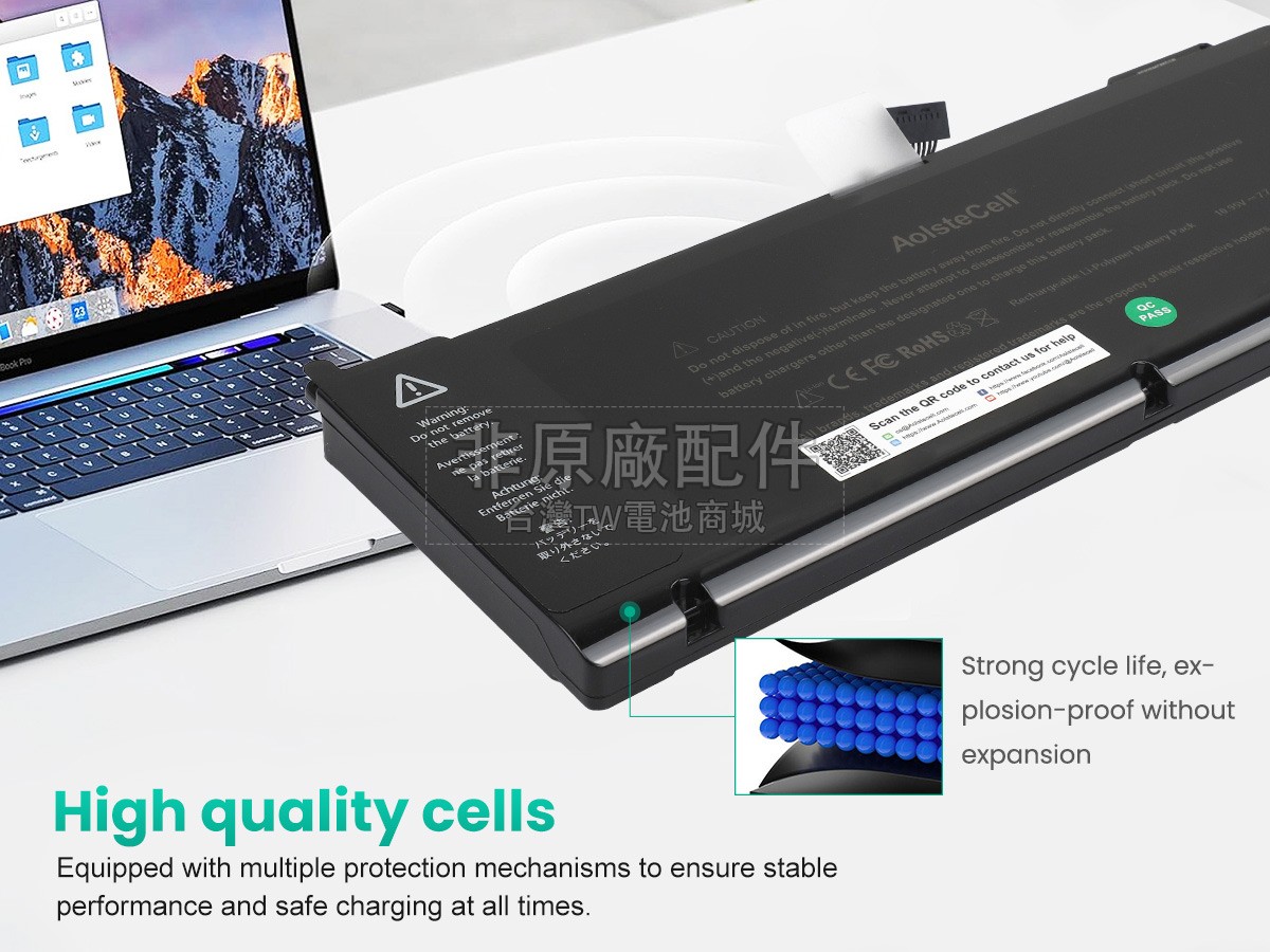 筆電電池好不好要看“芯”,內置電芯是筆電電池最重要的組成部分。 我們的APPLE蘋果MacBook Pro 15.4 inch MC721LL/A筆記型電腦電池都是採用原廠品質的A+級電芯組裝而成,確保更好的安全性,更長的供電時間和更久的使用壽命。