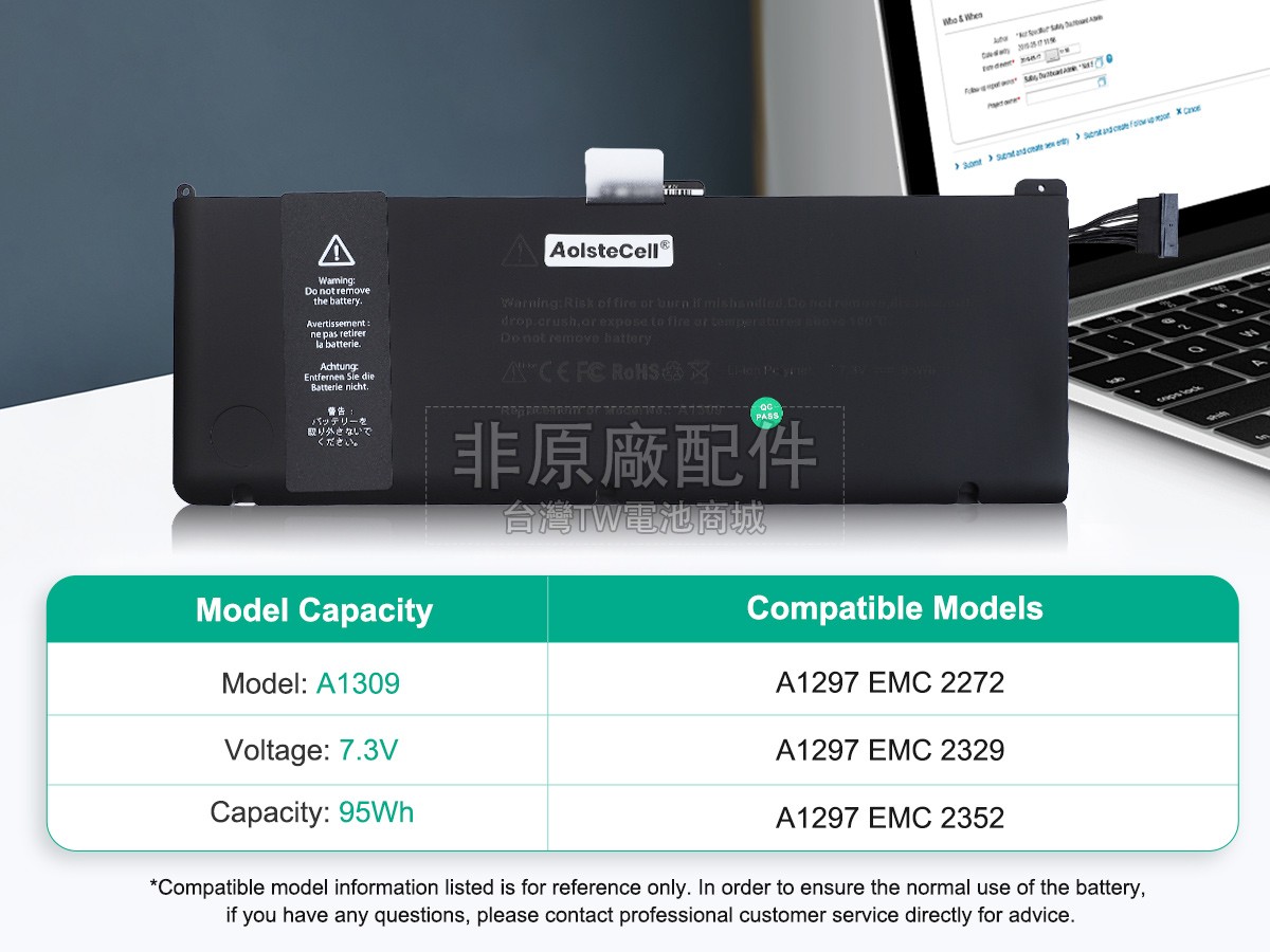 APPLE蘋果MacBook Pro Core I7 2.66GHZ 17 inch A1297(EMC 2352*)電池適合的型號並沒有一一列出來,如果您無法確定它是否適合您的設備,可以通過電池鏈接申請頁面請求幫助。