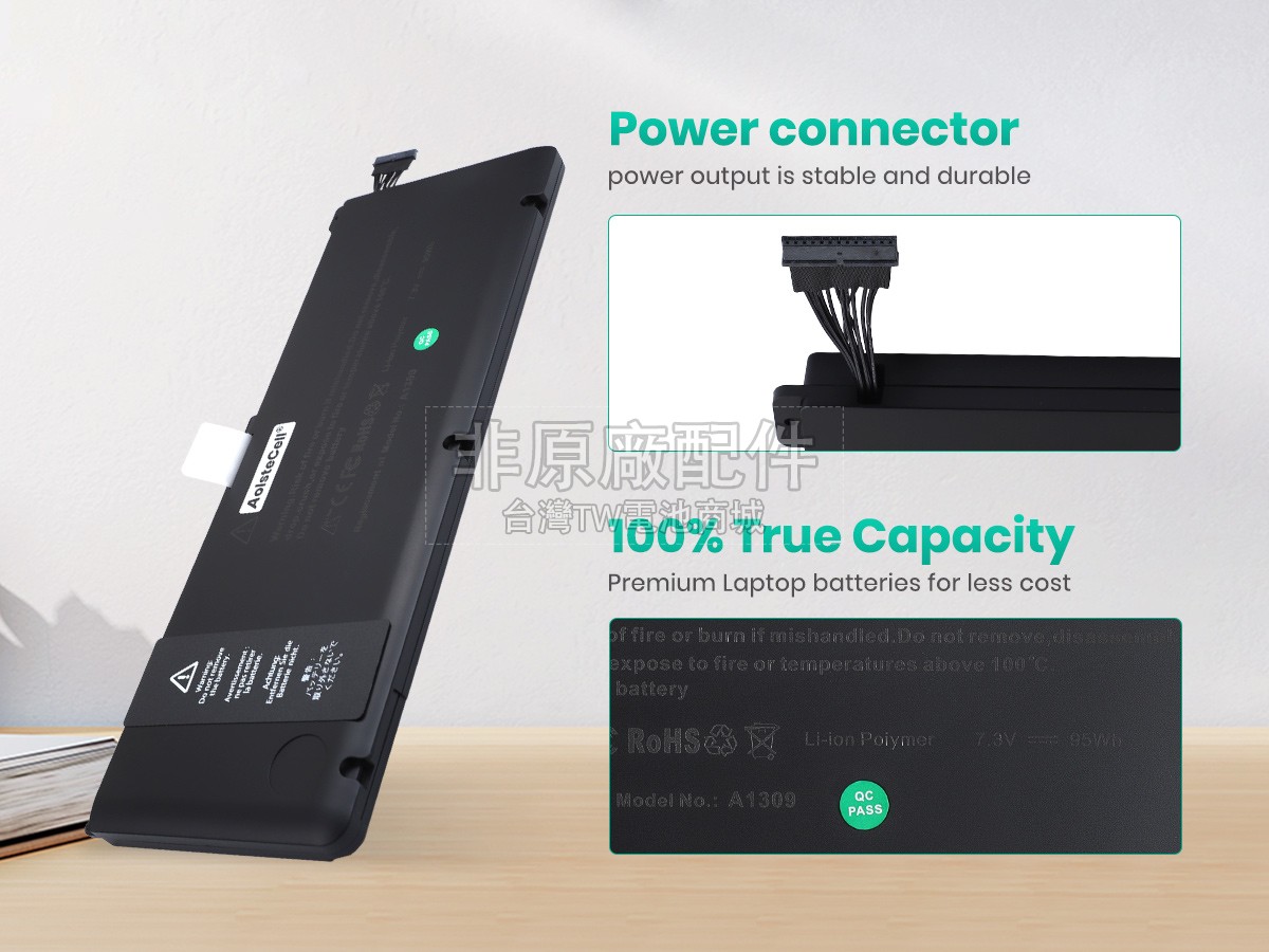 台灣TW電池商城售賣的所有電池均為100%真實容量,我們絕不會在參數上造假。對於製造商提供的每一款電池,我們都會安排技術人員進行參數測試,以確保我們售賣的電池都符合各種認證的要求、100%安全和100%兼容對應的筆記型電腦。極少數情況下,電池參數表上的容量會比電池實物圖上的容量低,這是因為我們檢測時發現製造商給出的電池容量偏高,與電池實際容量不符。於是我們會把電池的實際容量準確地填寫在參數表上,讓顧客直接看到電池的真實容量!這款Apple MacBook Pro Core I7 2.66GHZ 17 inch A1297(EMC 2352*)電池和原廠有什麼區別?