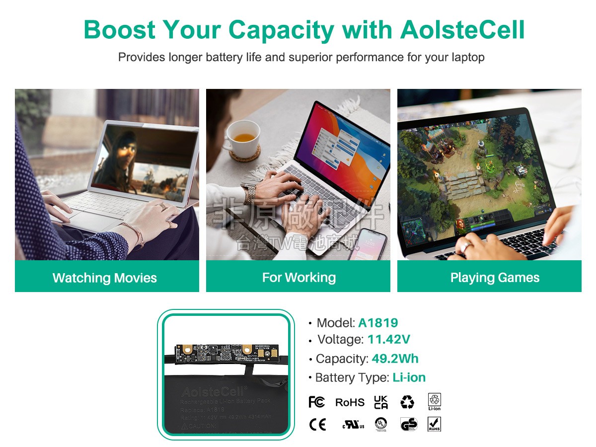 筆電電池存放方式不當、存放時間過久都會對電池性能和壽命造成巨大的傷害。我們只向顧客銷售最新的APPLE蘋果MacBook Pro Core I7 3.3 13 inch TOUCH A1706(Late 2016)筆電電池,且我們的電池在出庫之前都會進行一系列嚴格的質量檢測和安全測試, 確保顧客收到的筆電電池都是狀態良好、品質可靠的新電池。