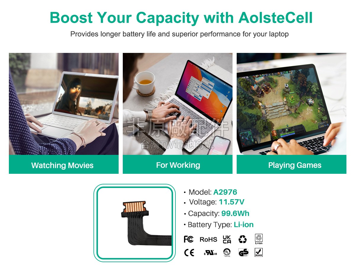 台灣TW電池商城售賣的所有電池均為100%真實容量,我們絕不會在參數上造假。對於製造商提供的每一款電池,我們都會安排技術人員進行參數測試,以確保我們售賣的電池都符合各種認證的要求、100%安全和100%兼容對應的筆記型電腦。極少數情況下,電池參數表上的容量會比電池實物圖上的容量低,這是因為我們檢測時發現製造商給出的電池容量偏高,與電池實際容量不符。於是我們會把電池的實際容量準確地填寫在參數表上,讓顧客直接看到電池的真實容量!這款Apple MacBook Pro M3 MAX 14 CPU 30 GPU 16 A2991 EMC 8408電池和原廠有什麼區別?