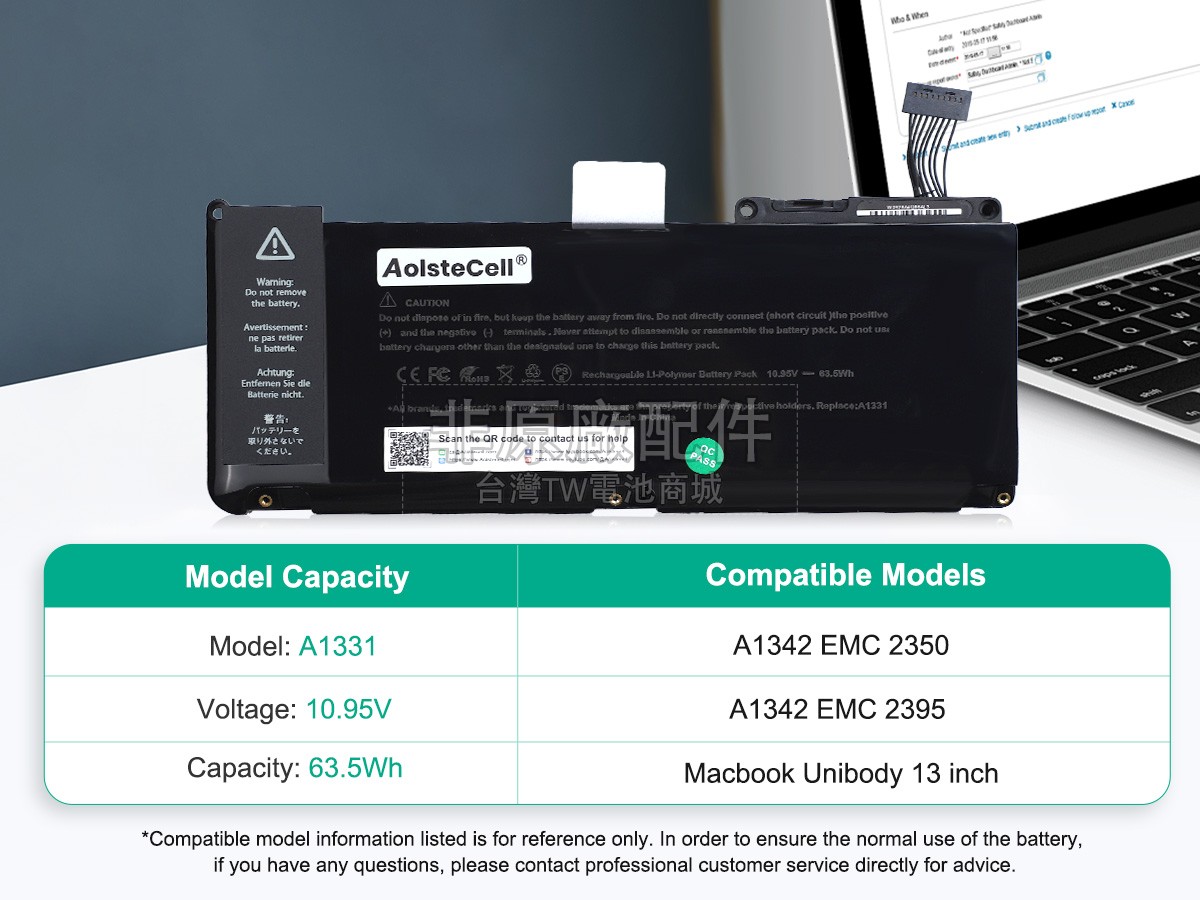 台灣TW電池商城售賣的所有電池均為100%真實容量,我們絕不會在參數上造假。對於製造商提供的每一款電池,我們都會安排技術人員進行參數測試,以確保我們售賣的電池都符合各種認證的要求、100%安全和100%兼容對應的筆記型電腦。極少數情況下,電池參數表上的容量會比電池實物圖上的容量低,這是因為我們檢測時發現製造商給出的電池容量偏高,與電池實際容量不符。於是我們會把電池的實際容量準確地填寫在參數表上,讓顧客直接看到電池的真實容量!這款Apple MacBook Unibody 13 inch MC516LL/A電池和原廠有什麼區別?