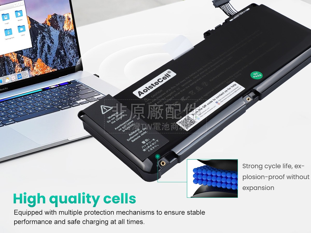 筆電電池好不好要看“芯”,內置電芯是筆電電池最重要的組成部分。 我們的APPLE蘋果MacBook Unibody 13 inch MC516LL/A筆記型電腦電池都是採用原廠品質的A+級電芯組裝而成,確保更好的安全性,更長的供電時間和更久的使用壽命。