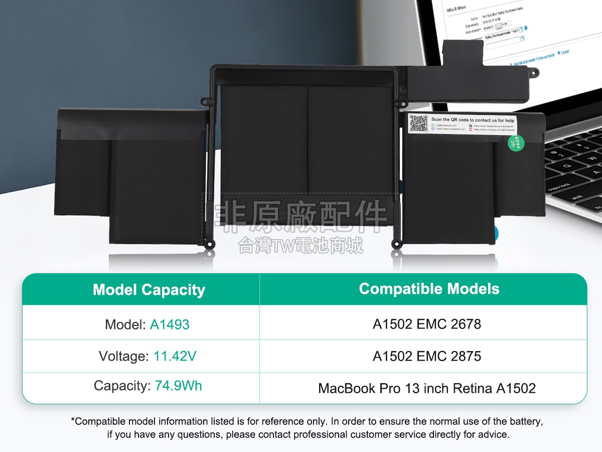 台灣TW電池商城售賣的所有電池均為100%真實容量,我們絕不會在參數上造假。對於製造商提供的每一款電池,我們都會安排技術人員進行參數測試,以確保我們售賣的電池都符合各種認證的要求、100%安全和100%兼容對應的筆記型電腦。極少數情況下,電池參數表上的容量會比電池實物圖上的容量低,這是因為我們檢測時發現製造商給出的電池容量偏高,與電池實際容量不符。於是我們會把電池的實際容量準確地填寫在參數表上,讓顧客直接看到電池的真實容量!這款Apple MGX72LL/A*電池和原廠有什麼區別?