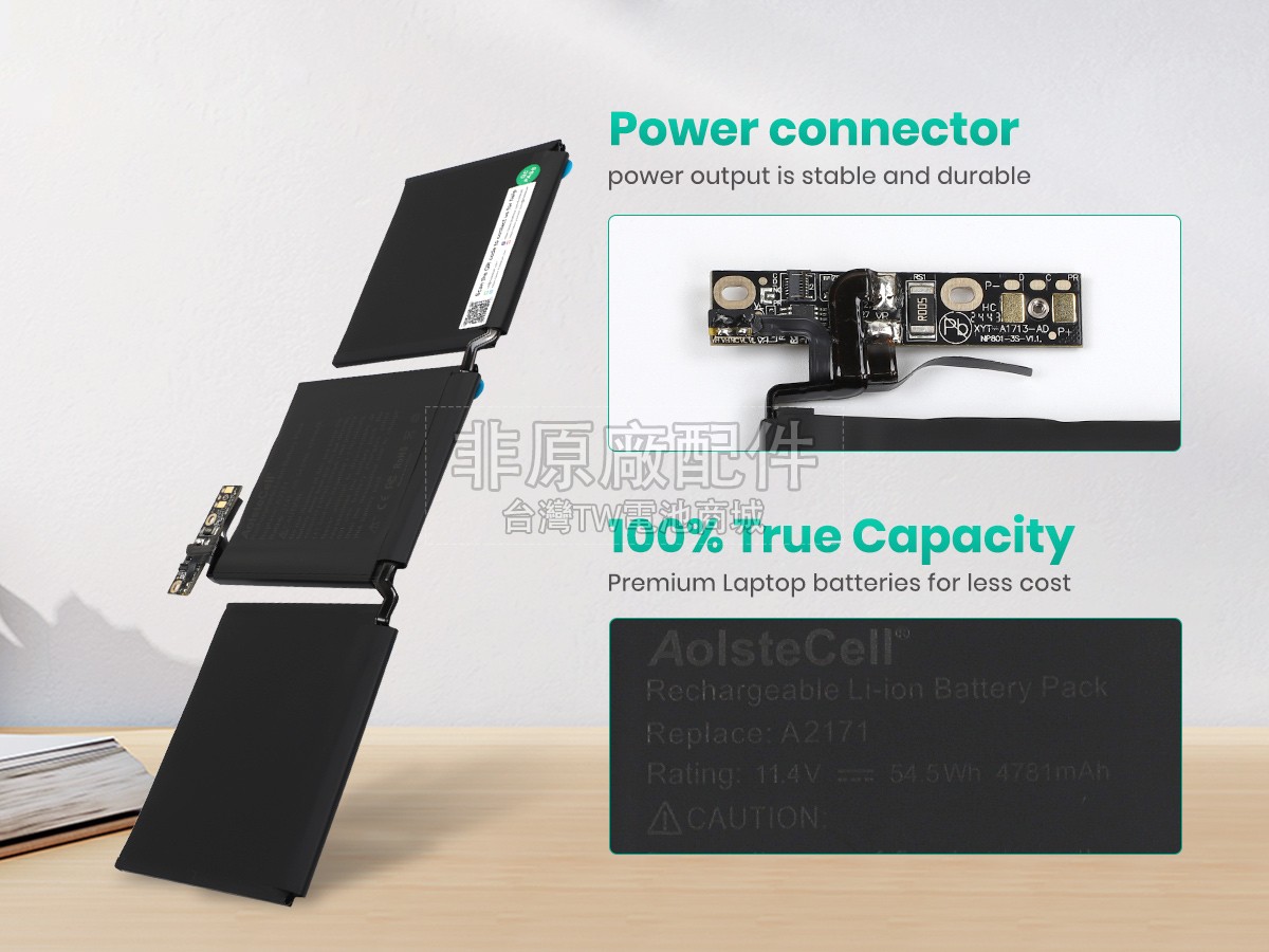 台灣TW電池商城售賣的所有電池均為100%真實容量,我們絕不會在參數上造假。對於製造商提供的每一款電池,我們都會安排技術人員進行參數測試,以確保我們售賣的電池都符合各種認證的要求、100%安全和100%兼容對應的筆記型電腦。極少數情況下,電池參數表上的容量會比電池實物圖上的容量低,這是因為我們檢測時發現製造商給出的電池容量偏高,與電池實際容量不符。於是我們會把電池的實際容量準確地填寫在參數表上,讓顧客直接看到電池的真實容量!這款Apple MYDA2LL/A*電池和原廠有什麼區別?