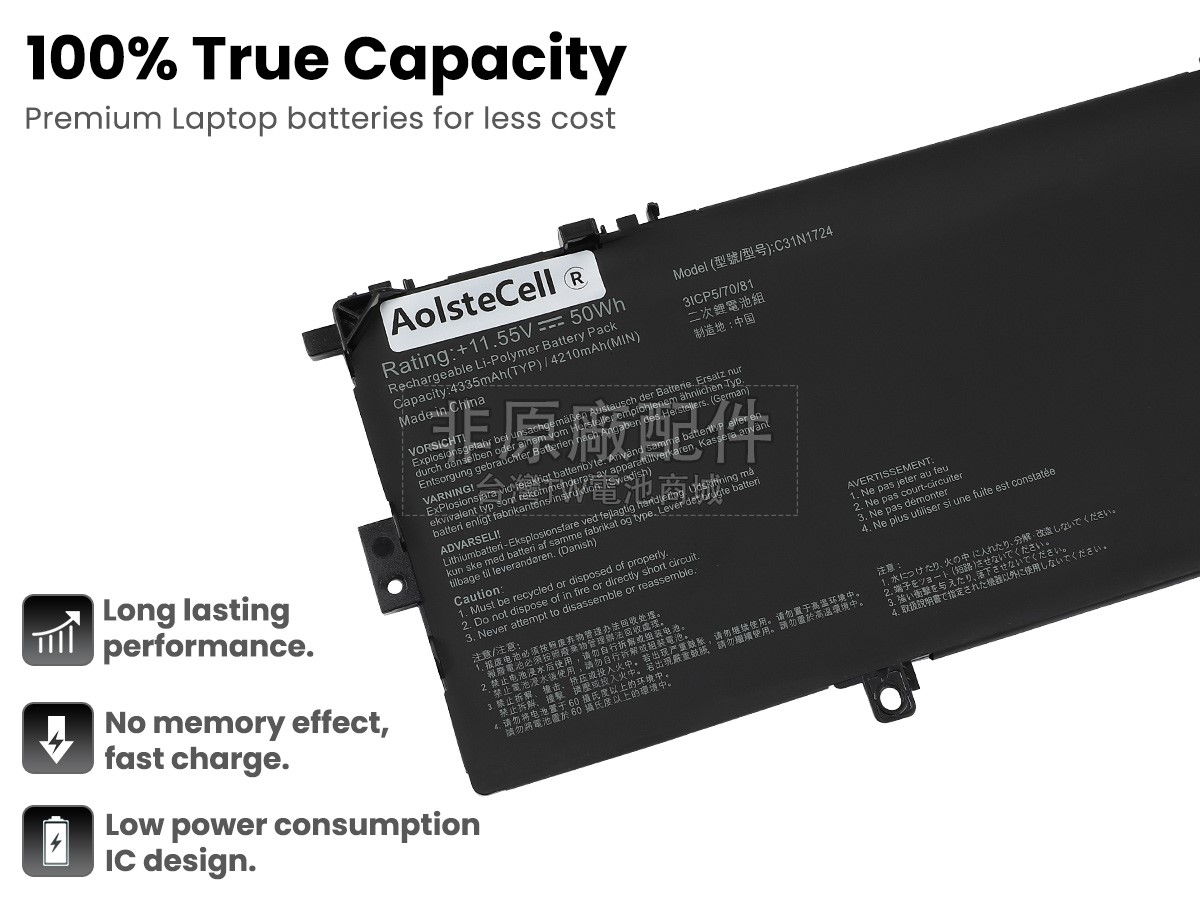 筆電電池好不好要看“芯”,內置電芯是筆電電池最重要的組成部分。 我們的ASUS華碩0B200-02760400筆記型電腦電池都是採用原廠品質的A+級電芯組裝而成,確保更好的安全性,更長的供電時間和更久的使用壽命。