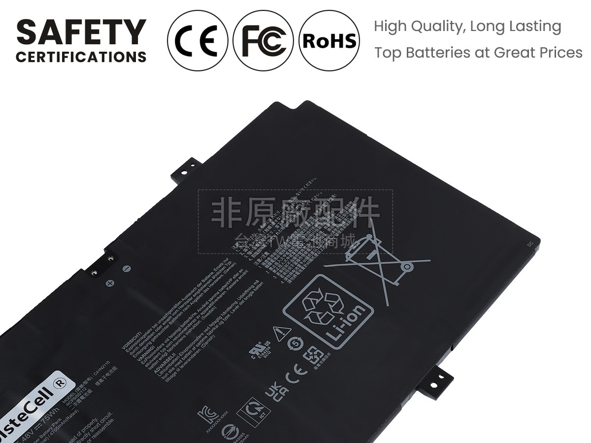 除了使用好的材料外,TW電池商城還以更高的行業標準檢測產品,目前我們的Asus 0B200-04220000手提電腦電池已經通過日本PSE強制認證、歐盟RoHS環保認證、CE安全認證、美國FCC認證和MSDS化學品安全認證。