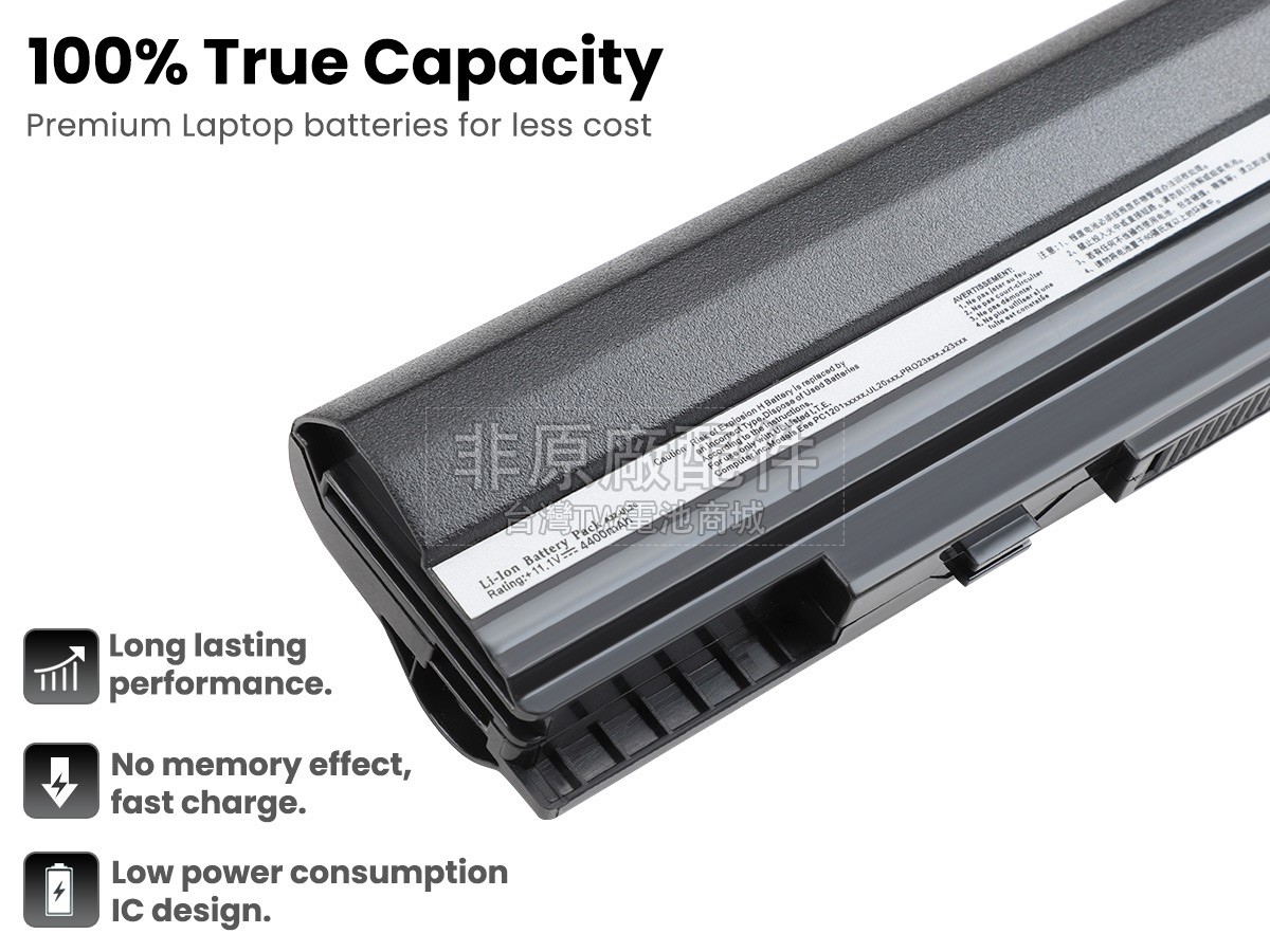 台灣TW電池商城售賣的所有電池均為100%真實容量,我們絕不會在參數上造假。對於製造商提供的每一款電池,我們都會安排技術人員進行參數測試,以確保我們售賣的電池都符合各種認證的要求、100%安全和100%兼容對應的筆記型電腦。極少數情況下,電池參數表上的容量會比電池實物圖上的容量低,這是因為我們檢測時發現製造商給出的電池容量偏高,與電池實際容量不符。於是我們會把電池的實際容量準確地填寫在參數表上,讓顧客直接看到電池的真實容量!這款Asus A32-UL20電池和原廠有什麼區別?