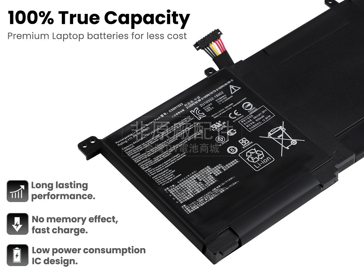 台灣TW電池商城售賣的所有電池均為100%真實容量,我們絕不會在參數上造假。對於製造商提供的每一款電池,我們都會安排技術人員進行參數測試,以確保我們售賣的電池都符合各種認證的要求、100%安全和100%兼容對應的筆記型電腦。極少數情況下,電池參數表上的容量會比電池實物圖上的容量低,這是因為我們檢測時發現製造商給出的電池容量偏高,與電池實際容量不符。於是我們會把電池的實際容量準確地填寫在參數表上,讓顧客直接看到電池的真實容量!這款Asus C32N1523電池和原廠有什麼區別?