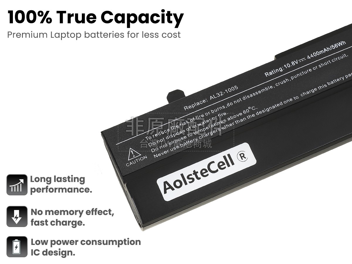 台灣TW電池商城售賣的所有電池均為100%真實容量,我們絕不會在參數上造假。對於製造商提供的每一款電池,我們都會安排技術人員進行參數測試,以確保我們售賣的電池都符合各種認證的要求、100%安全和100%兼容對應的筆記型電腦。極少數情況下,電池參數表上的容量會比電池實物圖上的容量低,這是因為我們檢測時發現製造商給出的電池容量偏高,與電池實際容量不符。於是我們會把電池的實際容量準確地填寫在參數表上,讓顧客直接看到電池的真實容量!這款Asus Eee PC 1005PE-MU27-PI電池和原廠有什麼區別?