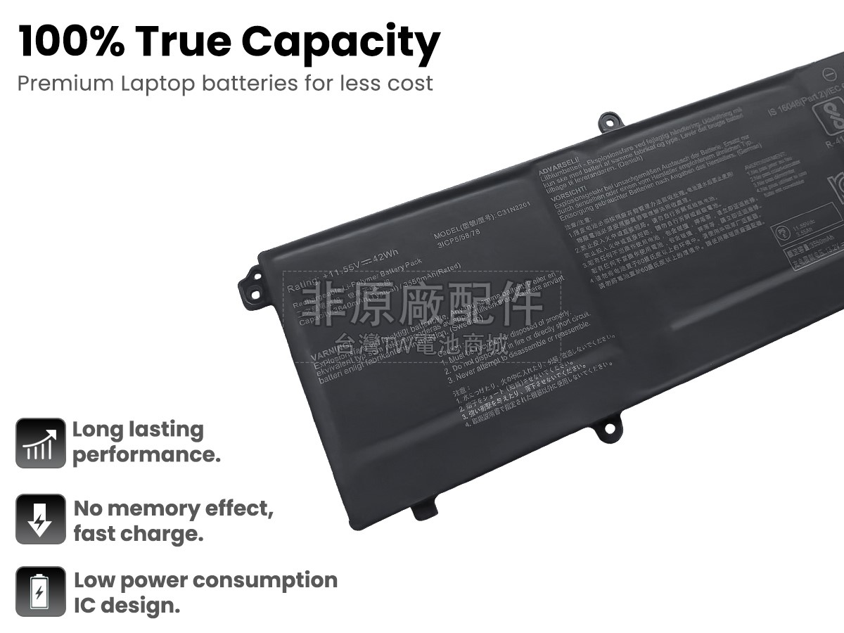 台灣TW電池商城售賣的所有電池均為100%真實容量,我們絕不會在參數上造假。對於製造商提供的每一款電池,我們都會安排技術人員進行參數測試,以確保我們售賣的電池都符合各種認證的要求、100%安全和100%兼容對應的筆記型電腦。極少數情況下,電池參數表上的容量會比電池實物圖上的容量低,這是因為我們檢測時發現製造商給出的電池容量偏高,與電池實際容量不符。於是我們會把電池的實際容量準確地填寫在參數表上,讓顧客直接看到電池的真實容量!這款Asus K3604ZA電池和原廠有什麼區別?