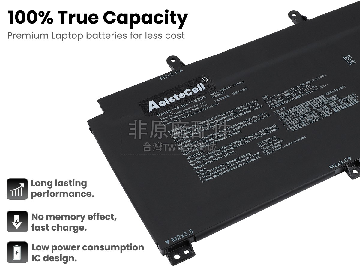 筆電電池好不好要看“芯”,內置電芯是筆電電池最重要的組成部分。 我們的ASUS華碩Rog FLOW X13 GV301QH筆記型電腦電池都是採用原廠品質的A+級電芯組裝而成,確保更好的安全性,更長的供電時間和更久的使用壽命。