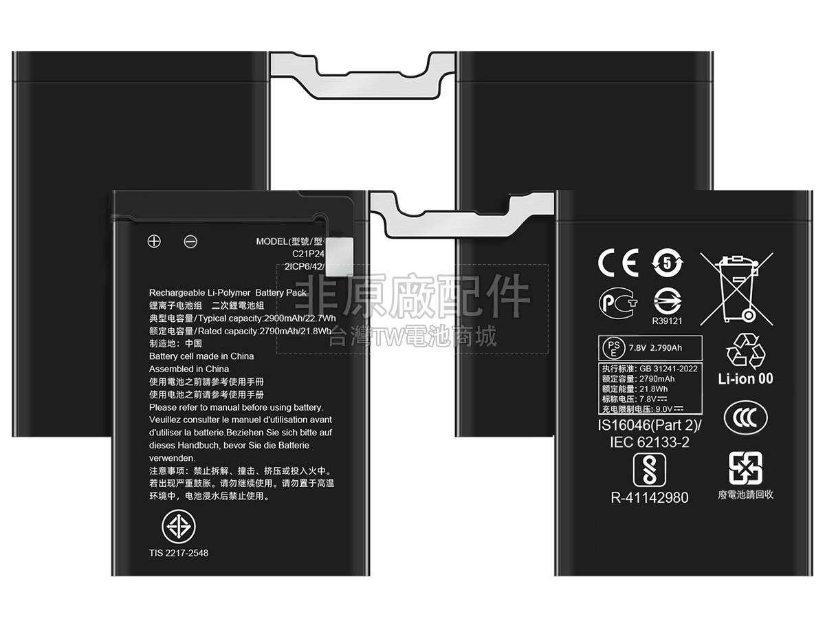除了使用好的材料外,TW電池商城還以更高的行業標準檢測產品,目前我們的Asus ROG PHONE 9電池已經通過日本PSE強制認證、歐盟RoHS環保認證、CE安全認證、美國FCC認證和MSDS化學品安全認證。