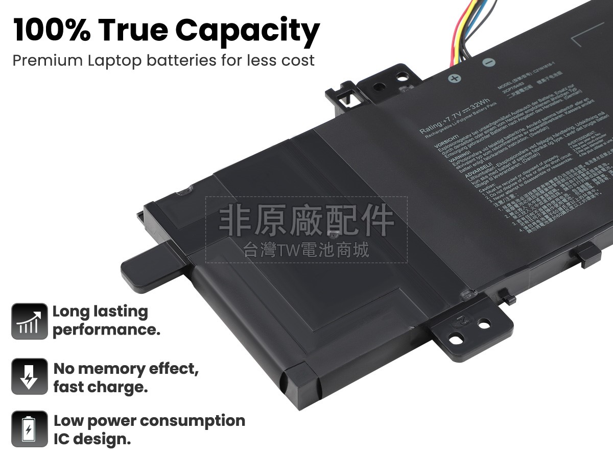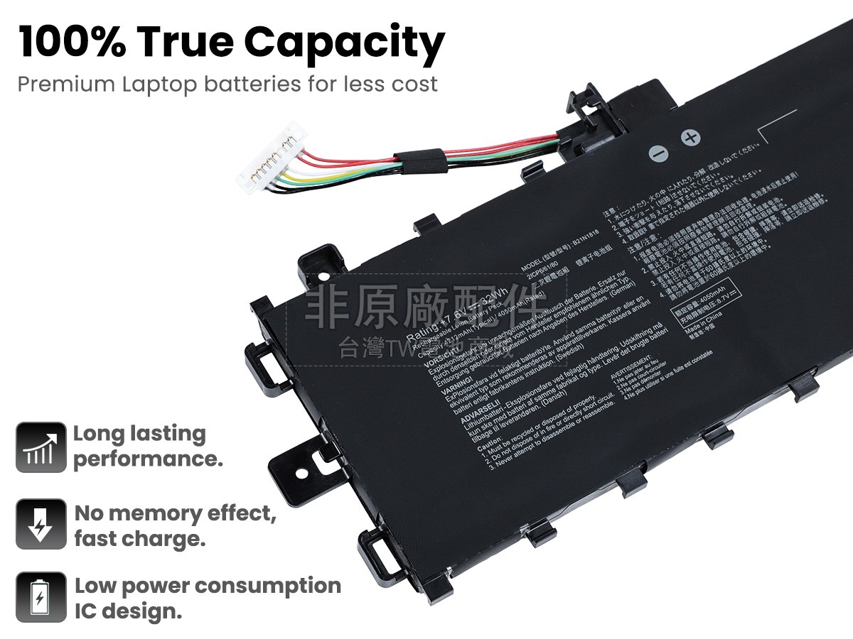 台灣TW電池商城售賣的所有電池均為100%真實容量,我們絕不會在參數上造假。對於製造商提供的每一款電池,我們都會安排技術人員進行參數測試,以確保我們售賣的電池都符合各種認證的要求、100%安全和100%兼容對應的筆記型電腦。極少數情況下,電池參數表上的容量會比電池實物圖上的容量低,這是因為我們檢測時發現製造商給出的電池容量偏高,與電池實際容量不符。於是我們會把電池的實際容量準確地填寫在參數表上,讓顧客直接看到電池的真實容量!這款Asus VivoBook 15 X515EA-EJ322T電池和原廠有什麼區別?