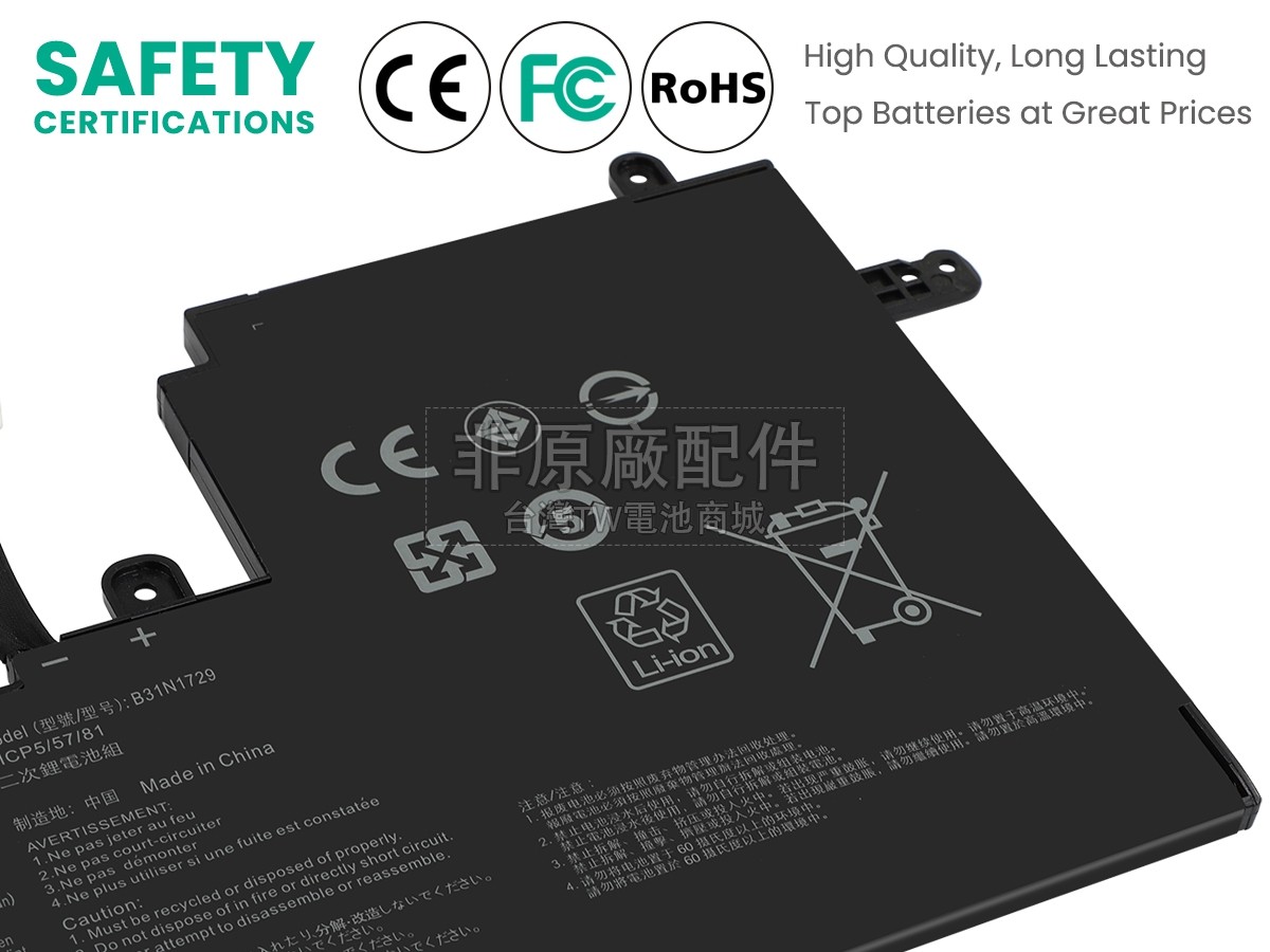 除了使用好的材料外,TW電池商城還以更高的行業標準檢測產品,目前我們的Asus VivoBook S530FN-BQ370T手提電腦電池已經通過日本PSE強制認證、歐盟RoHS環保認證、CE安全認證、美國FCC認證和MSDS化學品安全認證。