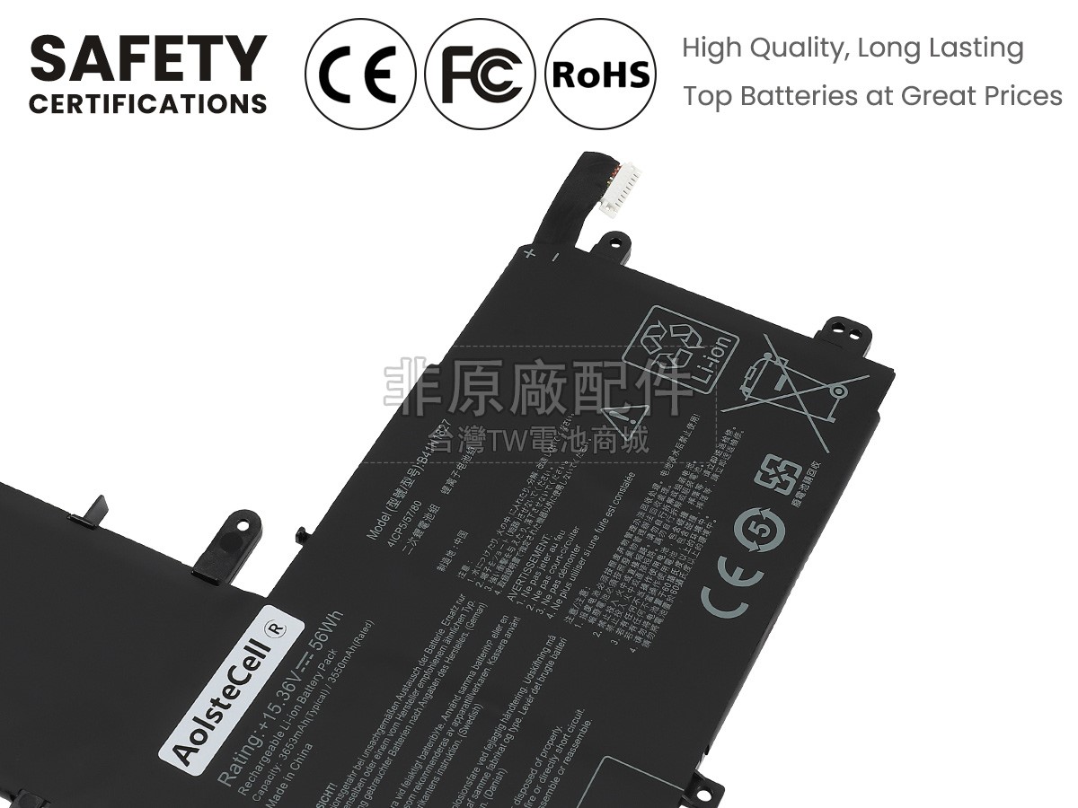台灣TW電池商城售賣的所有電池均為100%真實容量,我們絕不會在參數上造假。對於製造商提供的每一款電池,我們都會安排技術人員進行參數測試,以確保我們售賣的電池都符合各種認證的要求、100%安全和100%兼容對應的筆記型電腦。極少數情況下,電池參數表上的容量會比電池實物圖上的容量低,這是因為我們檢測時發現製造商給出的電池容量偏高,與電池實際容量不符。於是我們會把電池的實際容量準確地填寫在參數表上,讓顧客直接看到電池的真實容量!這款Asus ZenBook Flip 15 UX562FA-AC065T電池和原廠有什麼區別?