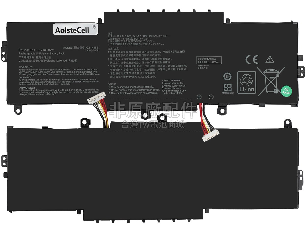 台灣TW電池商城售賣的所有電池均為100%真實容量,我們絕不會在參數上造假。對於製造商提供的每一款電池,我們都會安排技術人員進行參數測試,以確保我們售賣的電池都符合各種認證的要求、100%安全和100%兼容對應的筆記型電腦。極少數情況下,電池參數表上的容量會比電池實物圖上的容量低,這是因為我們檢測時發現製造商給出的電池容量偏高,與電池實際容量不符。於是我們會把電池的實際容量準確地填寫在參數表上,讓顧客直接看到電池的真實容量!這款Asus ZenBook UX433FA-A5188R電池和原廠有什麼區別?