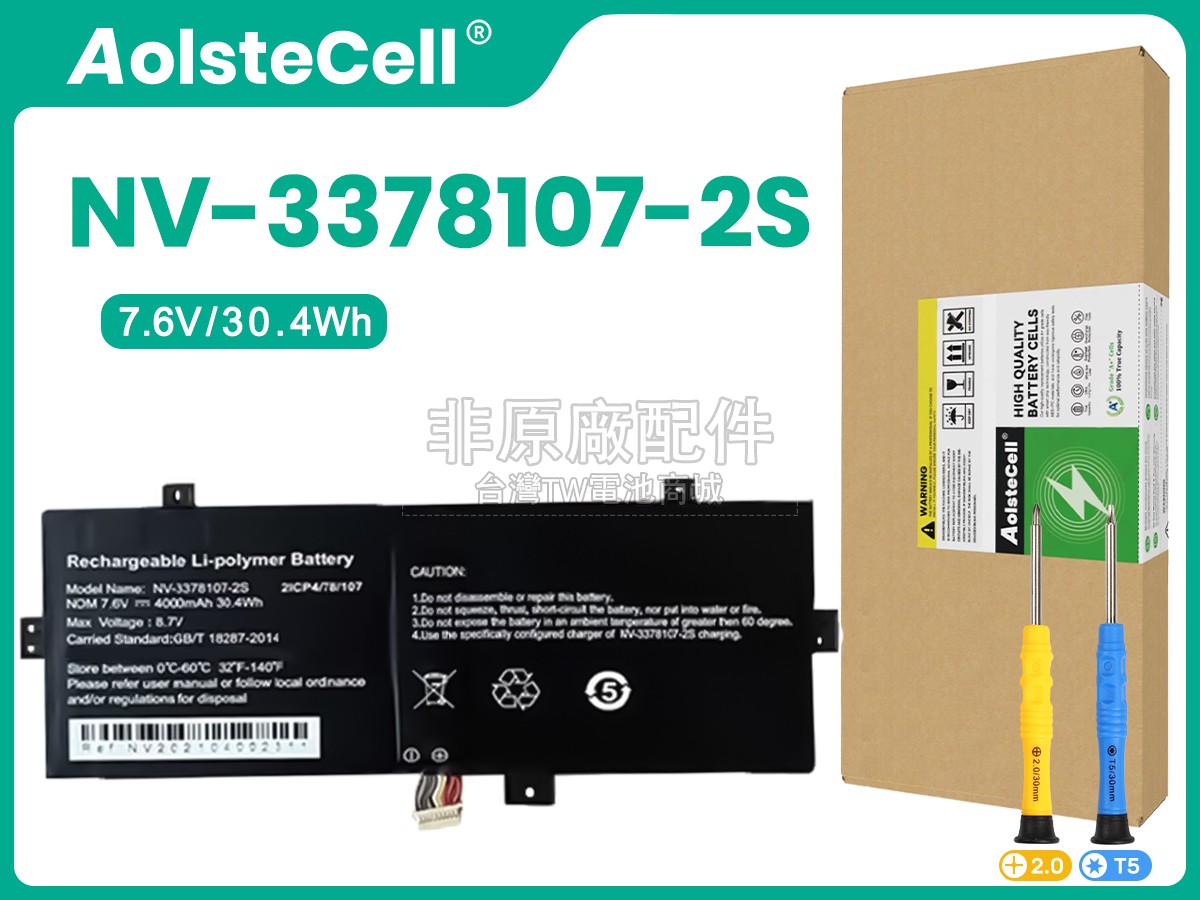 台灣TW電池商城售賣的所有電池均為100%真實容量,我們絕不會在參數上造假。對於製造商提供的每一款電池,我們都會安排技術人員進行參數測試,以確保我們售賣的電池都符合各種認證的要求、100%安全和100%兼容對應的筆記型電腦。極少數情況下,電池參數表上的容量會比電池實物圖上的容量低,這是因為我們檢測時發現製造商給出的電池容量偏高,與電池實際容量不符。於是我們會把電池的實際容量準確地填寫在參數表上,讓顧客直接看到電池的真實容量!這款AXIOO NV-3378107-2S電池和原廠有什麼區別?