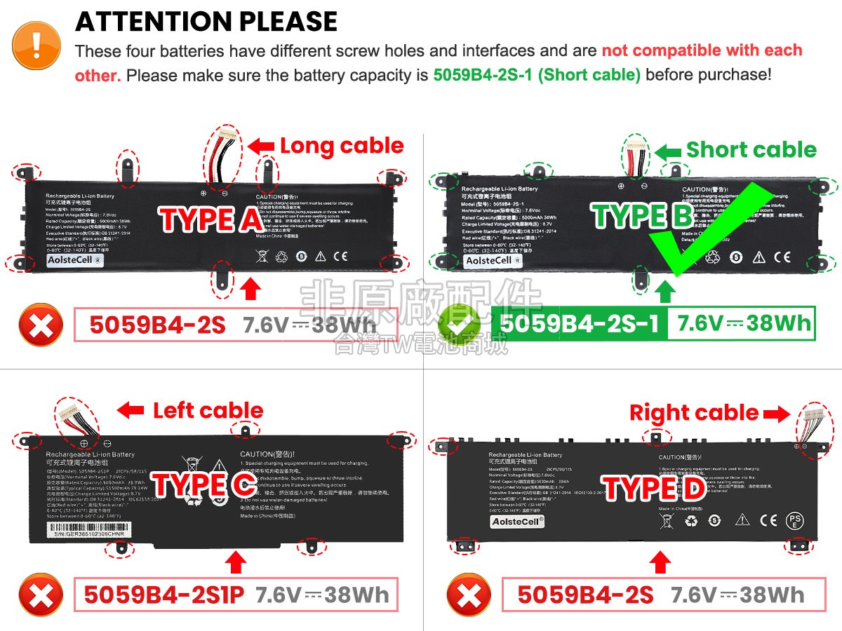 TW電池商城的電池和品牌電腦商一樣使用A+級電芯和頂級智能芯片製造而成。但是我們定制自己的電池外殼并降低了品牌所需要的附加成本,這就是為什麼顧客可以以更低的價格購買到原廠品質的替代電池的原因。