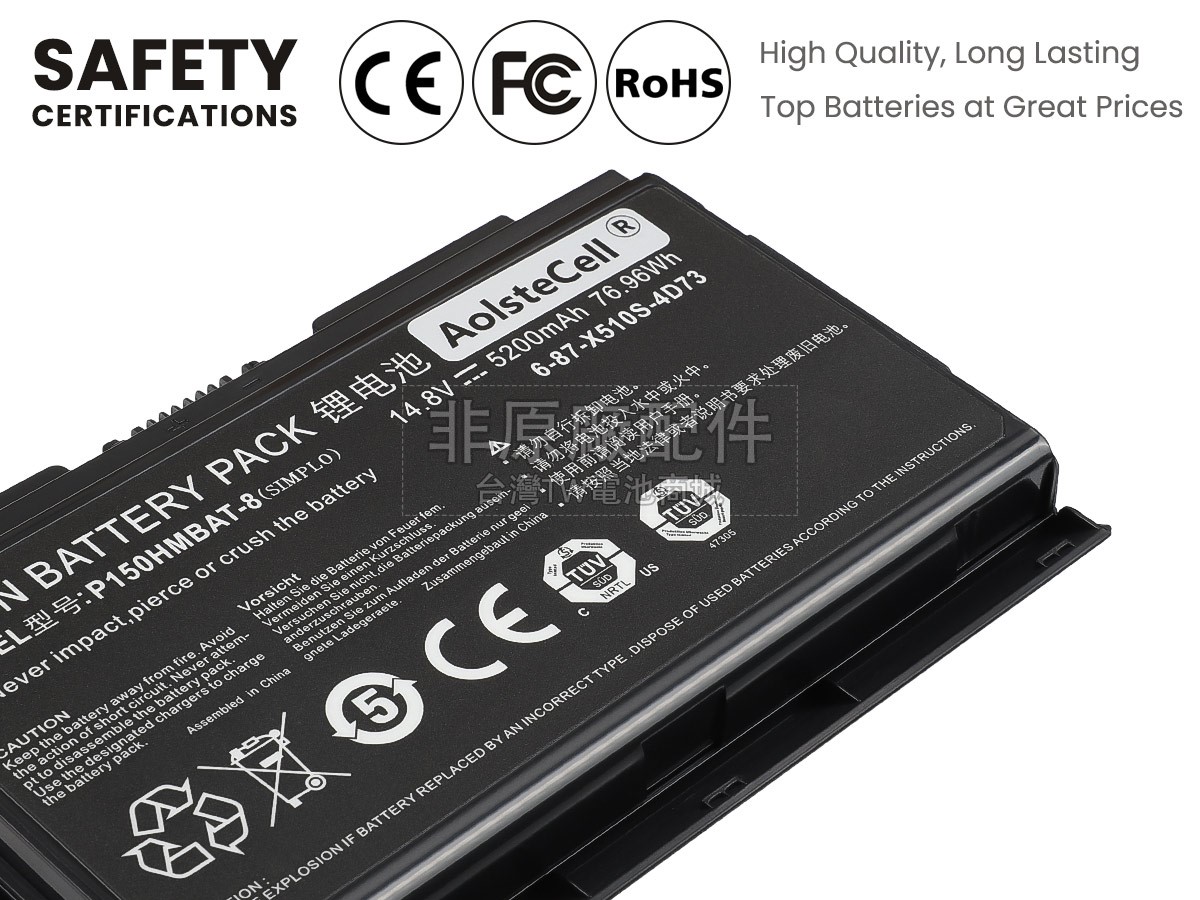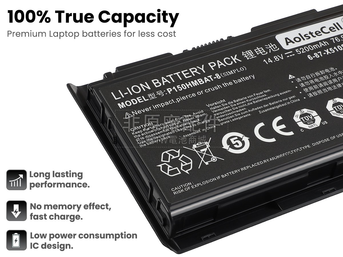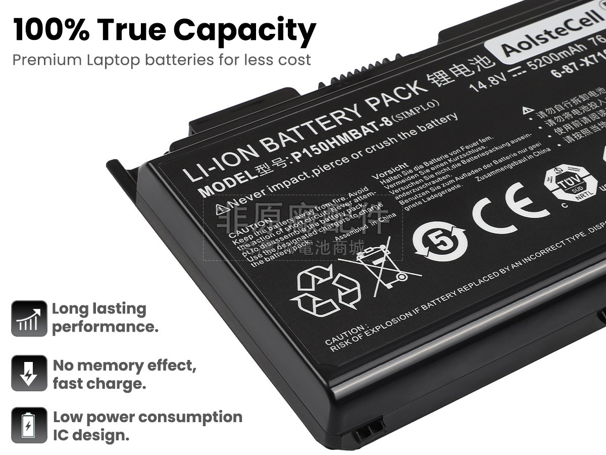 筆電電池好不好要看“芯”,內置電芯是筆電電池最重要的組成部分。 我們的CLEVO藍天6-87-X710S-4J72筆記型電腦電池都是採用原廠品質的A+級電芯組裝而成,確保更好的安全性,更長的供電時間和更久的使用壽命。