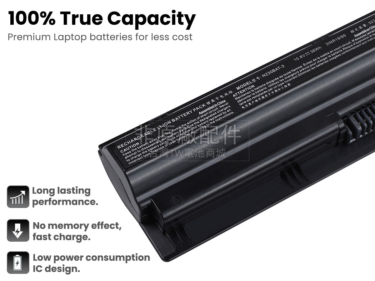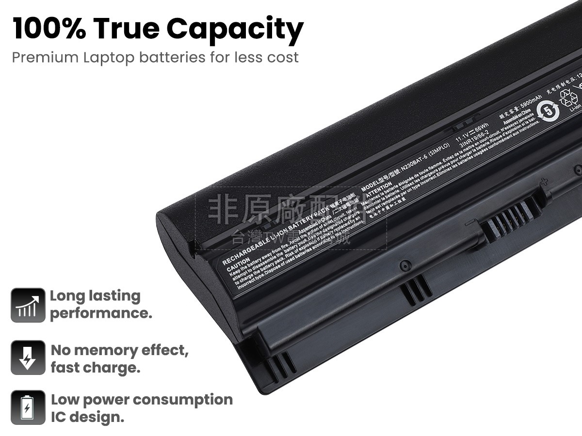 台灣TW電池商城售賣的所有電池均為100%真實容量,我們絕不會在參數上造假。對於製造商提供的每一款電池,我們都會安排技術人員進行參數測試,以確保我們售賣的電池都符合各種認證的要求、100%安全和100%兼容對應的筆記型電腦。極少數情況下,電池參數表上的容量會比電池實物圖上的容量低,這是因為我們檢測時發現製造商給出的電池容量偏高,與電池實際容量不符。於是我們會把電池的實際容量準確地填寫在參數表上,讓顧客直接看到電池的真實容量!這款Clevo N230BAT-3(3INR19/66)電池和原廠有什麼區別?