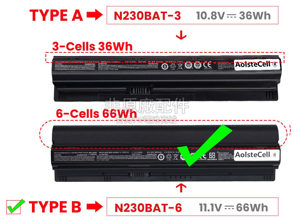 6. 選擇更高容量的CLEVO藍天N230BAT-3(3INR19/66)副廠電池。