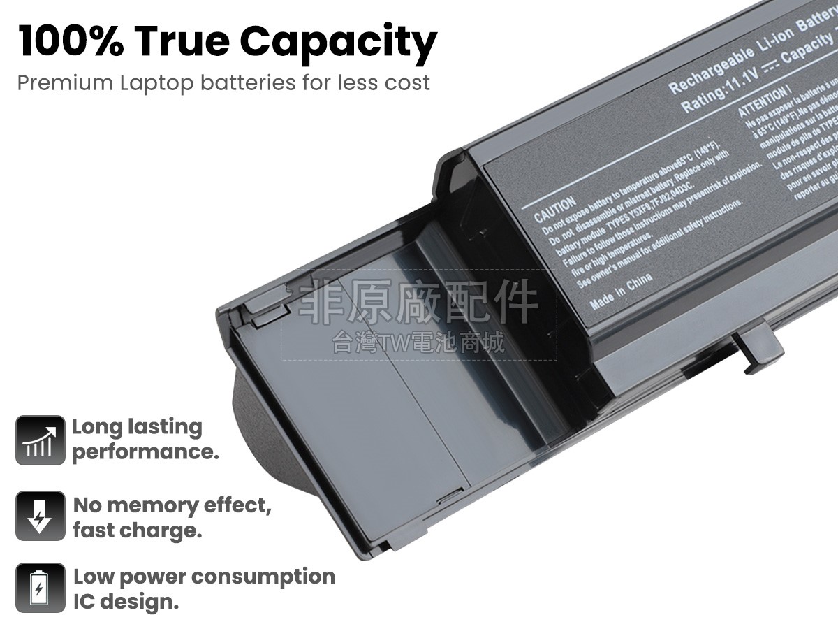 台灣TW電池商城售賣的所有電池均為100%真實容量,我們絕不會在參數上造假。對於製造商提供的每一款電池,我們都會安排技術人員進行參數測試,以確保我們售賣的電池都符合各種認證的要求、100%安全和100%兼容對應的筆記型電腦。極少數情況下,電池參數表上的容量會比電池實物圖上的容量低,這是因為我們檢測時發現製造商給出的電池容量偏高,與電池實際容量不符。於是我們會把電池的實際容量準確地填寫在參數表上,讓顧客直接看到電池的真實容量!這款Dell 4JK6R電池和原廠有什麼區別?