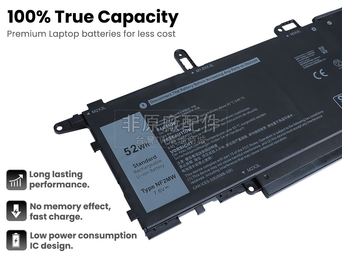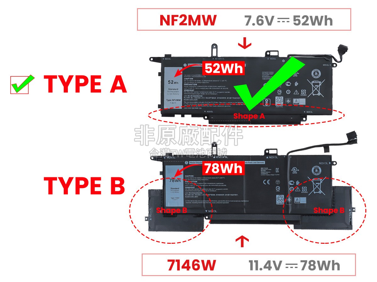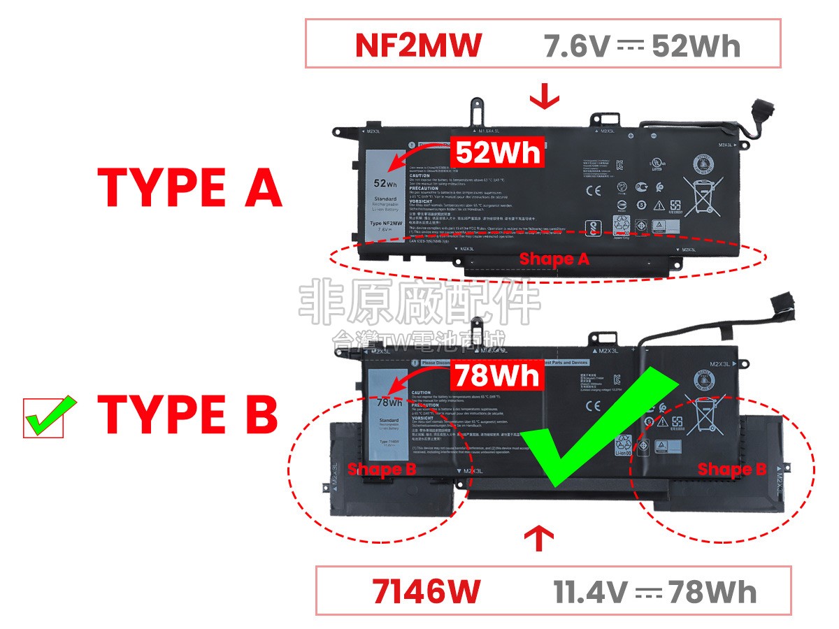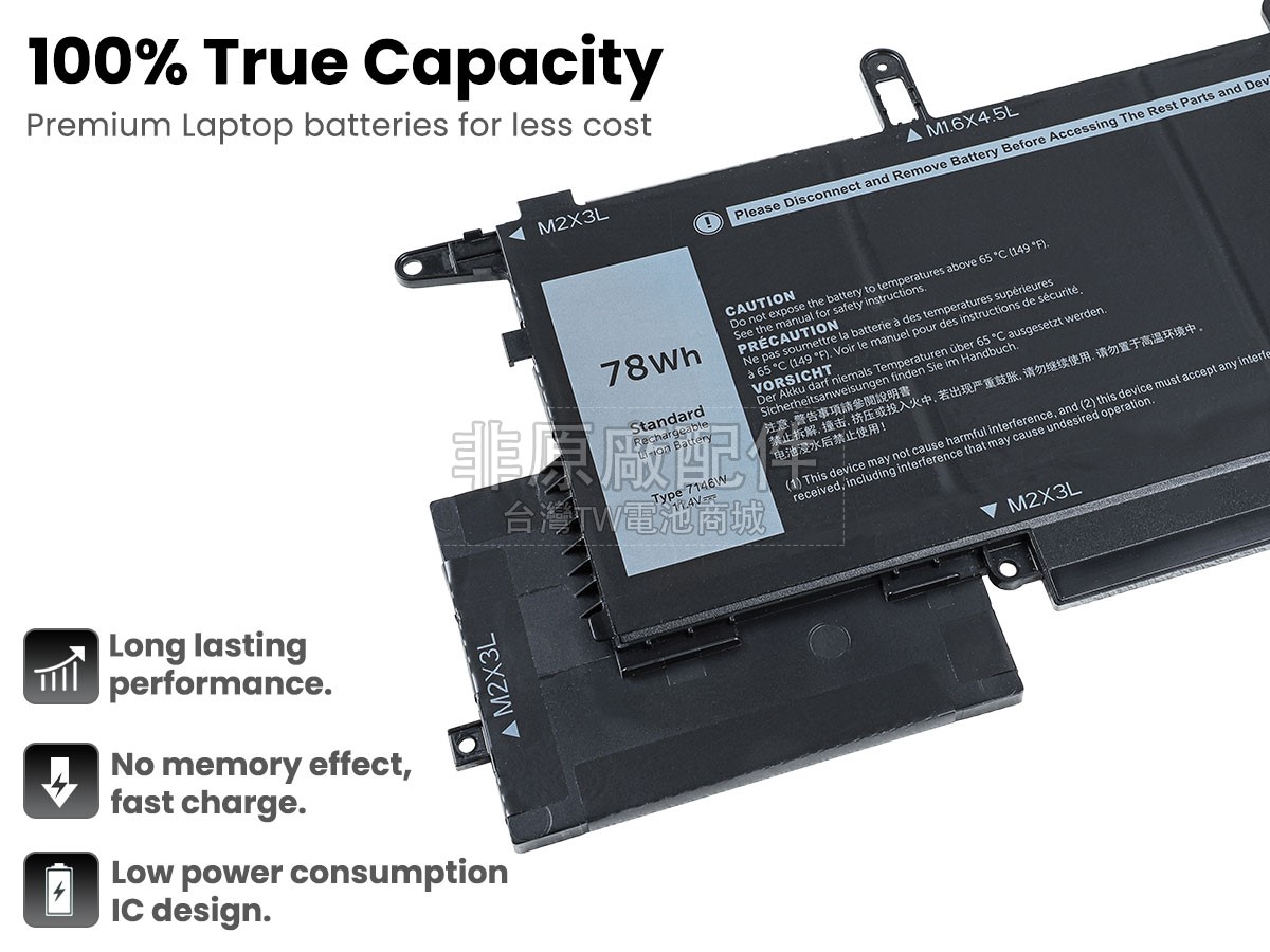 台灣TW電池商城售賣的所有電池均為100%真實容量,我們絕不會在參數上造假。對於製造商提供的每一款電池,我們都會安排技術人員進行參數測試,以確保我們售賣的電池都符合各種認證的要求、100%安全和100%兼容對應的筆記型電腦。極少數情況下,電池參數表上的容量會比電池實物圖上的容量低,這是因為我們檢測時發現製造商給出的電池容量偏高,與電池實際容量不符。於是我們會把電池的實際容量準確地填寫在參數表上,讓顧客直接看到電池的真實容量!這款Dell 7146W電池和原廠有什麼區別?