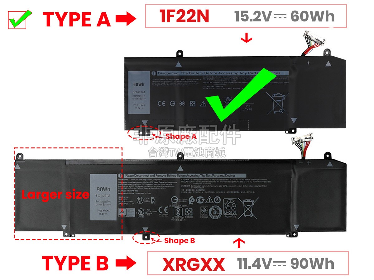 DELL戴爾Alienware M15 GTX 1070 MAX-Q電池適合的型號並沒有一一列出來,如果您無法確定它是否適合您的設備,可以通過電池鏈接申請頁面請求幫助。