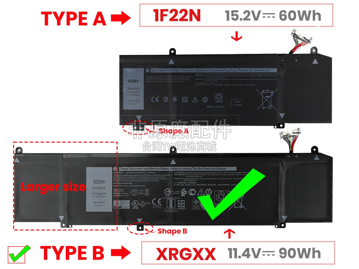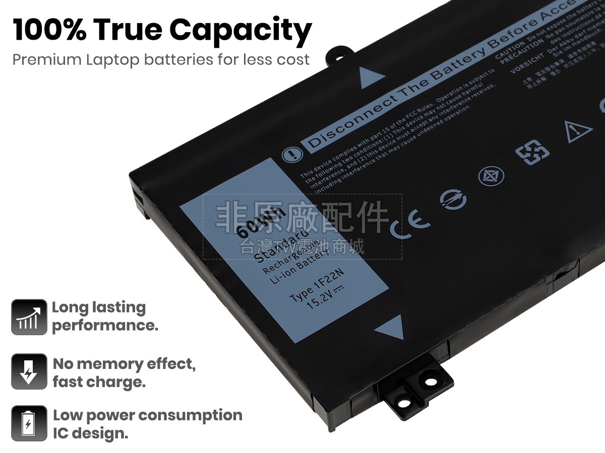 台灣TW電池商城售賣的所有電池均為100%真實容量,我們絕不會在參數上造假。對於製造商提供的每一款電池,我們都會安排技術人員進行參數測試,以確保我們售賣的電池都符合各種認證的要求、100%安全和100%兼容對應的筆記型電腦。極少數情況下,電池參數表上的容量會比電池實物圖上的容量低,這是因為我們檢測時發現製造商給出的電池容量偏高,與電池實際容量不符。於是我們會把電池的實際容量準確地填寫在參數表上,讓顧客直接看到電池的真實容量!這款Dell Alienware M15 GTX 1070 MAX-Q電池和原廠有什麼區別?