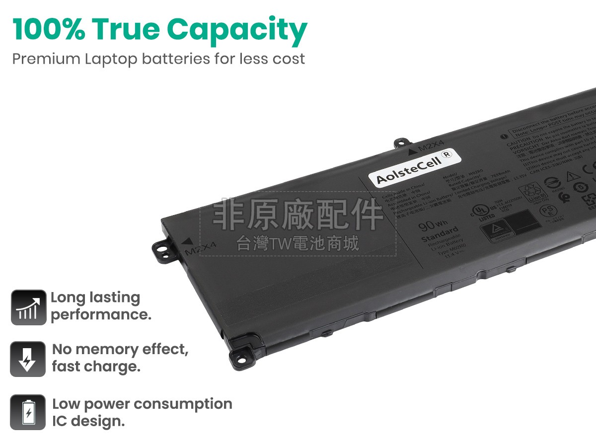 台灣TW電池商城售賣的所有電池均為100%真實容量,我們絕不會在參數上造假。對於製造商提供的每一款電池,我們都會安排技術人員進行參數測試,以確保我們售賣的電池都符合各種認證的要求、100%安全和100%兼容對應的筆記型電腦。極少數情況下,電池參數表上的容量會比電池實物圖上的容量低,這是因為我們檢測時發現製造商給出的電池容量偏高,與電池實際容量不符。於是我們會把電池的實際容量準確地填寫在參數表上,讓顧客直接看到電池的真實容量!這款Dell Alienware X16 R2電池和原廠有什麼區別?