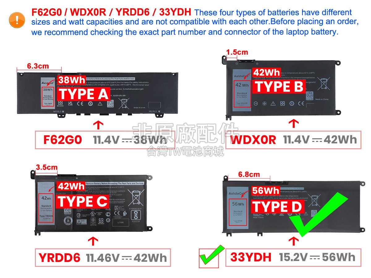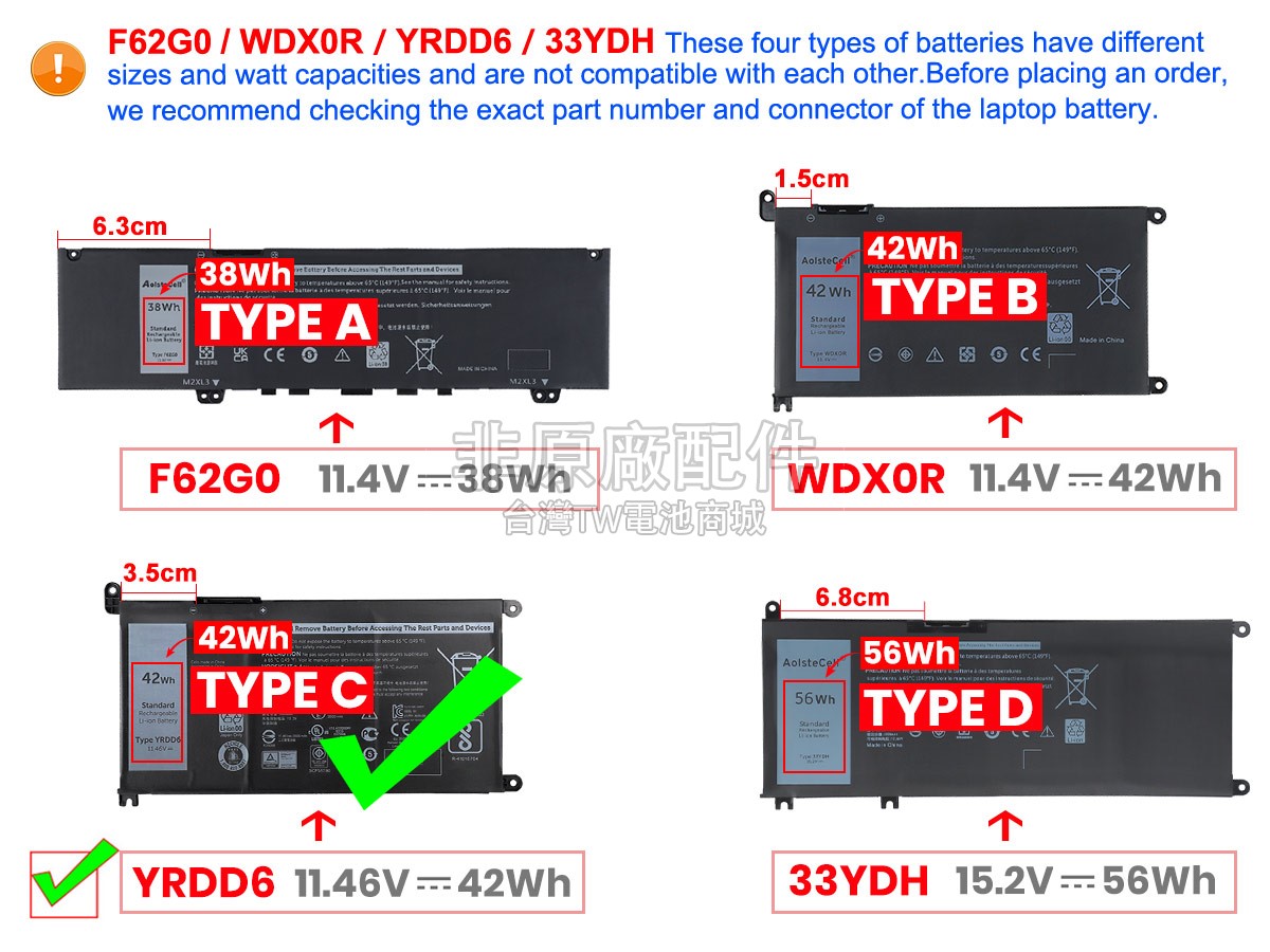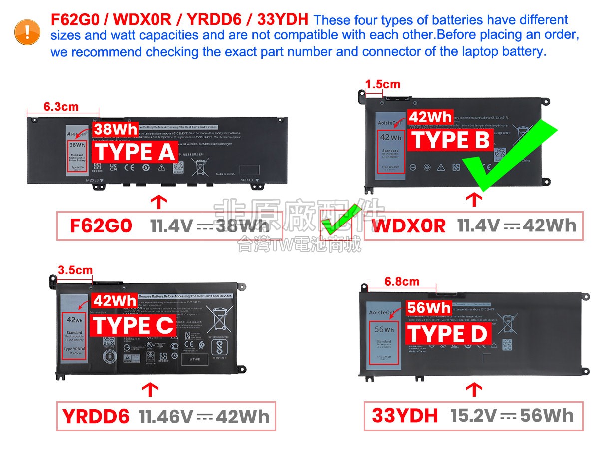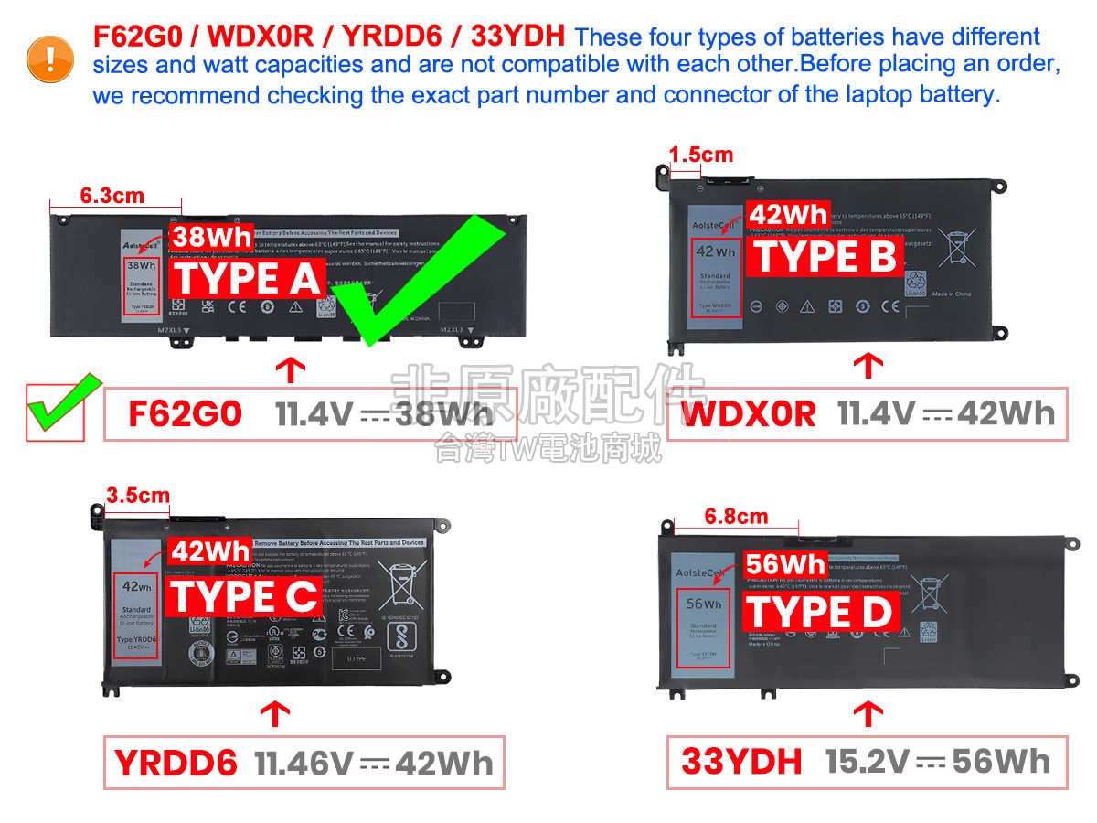 台灣TW電池商城售賣的所有電池均為100%真實容量,我們絕不會在參數上造假。對於製造商提供的每一款電池,我們都會安排技術人員進行參數測試,以確保我們售賣的電池都符合各種認證的要求、100%安全和100%兼容對應的筆記型電腦。極少數情況下,電池參數表上的容量會比電池實物圖上的容量低,這是因為我們檢測時發現製造商給出的電池容量偏高,與電池實際容量不符。於是我們會把電池的實際容量準確地填寫在參數表上,讓顧客直接看到電池的真實容量!這款Dell Inspiron 13 7000 2-IN-1電池和原廠有什麼區別?