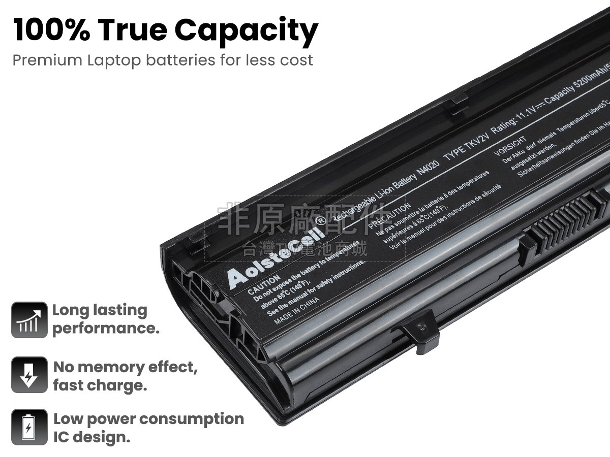 台灣TW電池商城售賣的所有電池均為100%真實容量,我們絕不會在參數上造假。對於製造商提供的每一款電池,我們都會安排技術人員進行參數測試,以確保我們售賣的電池都符合各種認證的要求、100%安全和100%兼容對應的筆記型電腦。極少數情況下,電池參數表上的容量會比電池實物圖上的容量低,這是因為我們檢測時發現製造商給出的電池容量偏高,與電池實際容量不符。於是我們會把電池的實際容量準確地填寫在參數表上,讓顧客直接看到電池的真實容量!這款Dell Inspiron M4010電池和原廠有什麼區別?