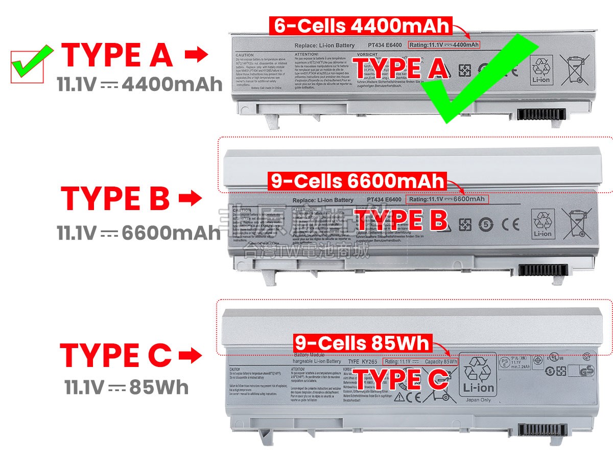台灣TW電池商城售賣的所有電池均為100%真實容量,我們絕不會在參數上造假。對於製造商提供的每一款電池,我們都會安排技術人員進行參數測試,以確保我們售賣的電池都符合各種認證的要求、100%安全和100%兼容對應的筆記型電腦。極少數情況下,電池參數表上的容量會比電池實物圖上的容量低,這是因為我們檢測時發現製造商給出的電池容量偏高,與電池實際容量不符。於是我們會把電池的實際容量準確地填寫在參數表上,讓顧客直接看到電池的真實容量!這款Dell KY265電池和原廠有什麼區別?